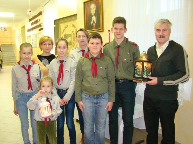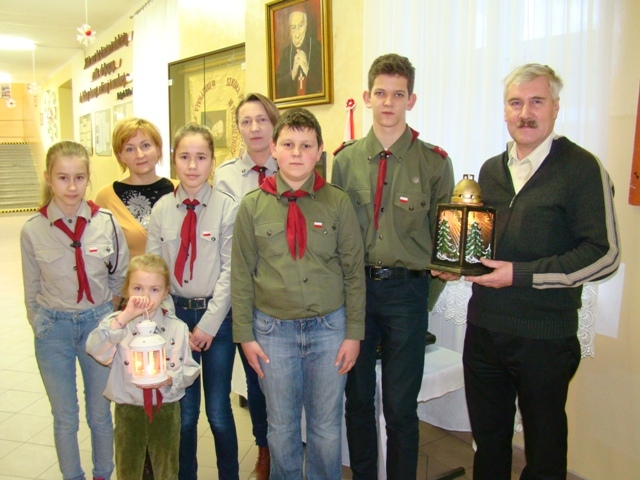 Po raz kolejny Harcerze z Drużyny Orion przekazali na ręce Dyrektora Szkoły Betlejemskie Światełko Pokoju przywiezione z Ziemi Świętej. W tym roku hasłem przewodnim są słowa Jana Pawła II „Pokój jest w Was”. W myśl tego przesłania mamy dążyć do pokonywania w sobie niepokoju, który wywołuje lęk i obawy. Powinniśmy zacząć tworzyć pokój na ziemi od pokoju wewnętrznego, gdyż tyle będzie wokół nas zła na ile pozwolimy i tyle może być dobra – ile uczynimy.