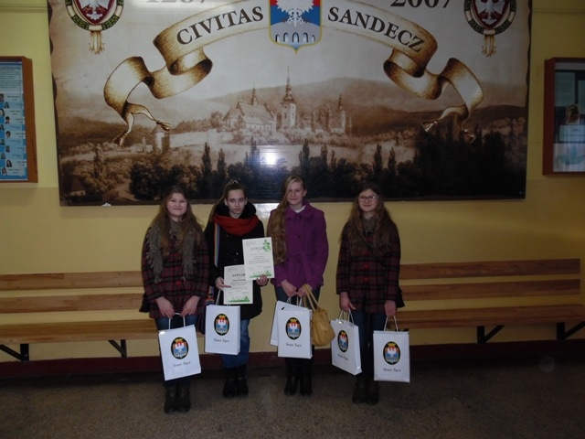 Dnia 15 stycznia 2015 r. w Gimnazjum im. Juliusza Słowackiego w Starym Sączu odbyły się gminne eliminacje konkursu o Popradzkim Parku Krajobrazowym. Z naszego gimnazjum uczestniczyły w nim: Paulina Jankowska z kl. IIa, Kinga i Karolina Gizickie z kl. IIb oraz Małgorzata Śmierciak z kl. IIIb. W klasyfikacji drużynowej nasza drużyna zdobyła I miejsce i zakwalifikowała się do kolejnego etapu konkursu, który odbędzie się 5 marca 2015r. W zmaganiach indywidualnych III miejsce w konkursie zdobyła Paulina Jankowska.