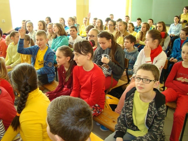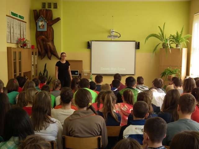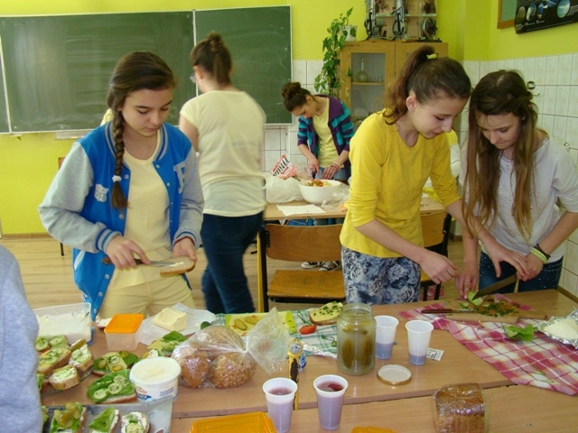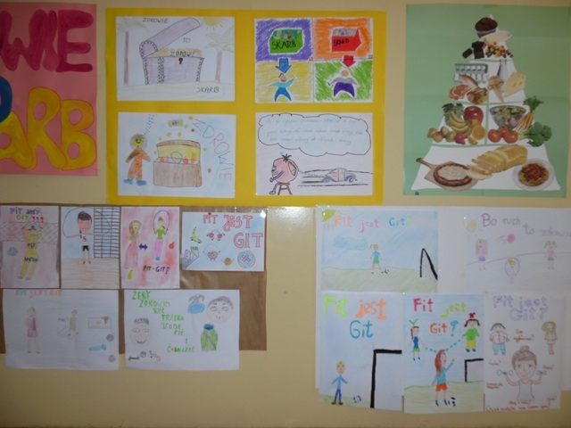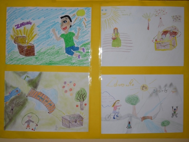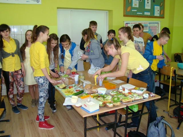 W tym radosnym dniu uczniowie przyszli do szkoły w kolorowych ubraniach - każda klasa losowała swój kolor kilka dni wcześniej. Na początek uczniowie uczestniczyli w bardzo ciekawych zajęciach prowadzonych przez panią dietetyk Katarzynę Wójs. Dla Szkoły Podstawowej pani detetyk przygotowała pogadankę pt. „Choroby dietozależne”, a dla Gimnazjum prelekcję pt. „Zmiana stylu życia” . Następnie uczniowie w swoich klasach wspólnie przygotowywali zdrowe posiłki: sałatki, kanapki i owocowe musy, które spożyli w radosnej atmosferze. Jako ostatni punkt obchodów dnia promocji zdrowia było wykonywanie w grupach, dowolną techniką, plakatów z przesłaniem: „Zdrowie to skarb”.