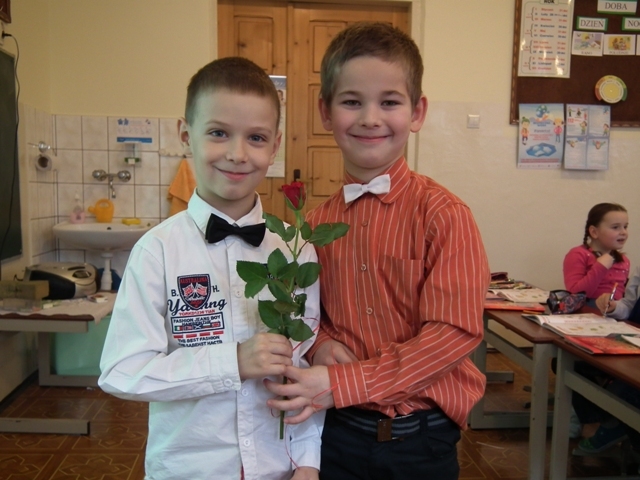 W dniu 6 marca 2015 r. w naszej szkole obchodziliśmy Dzień Kobiet i Dzień Mężczyzn. W tym dniu Samorząd Uczniowski ogłosił dzień bez mundurka. Panie ubrane były w spódniczki i sukienki, a Panowie w eleganckie koszule, krawaty i muchy. Męska część Samorządu Uczniowskiego wręczyła wszystkim Paniom pracującym w naszej szkole śliczne, żółte tulipany jako dowód wdzięczności za ich obecność i dobroć. W klasach panowała atmosfera radości, chłopcy obdarowywali dziewczynki różami i tulipanami, a dziewczynki chłopców słodkościami. To był bardzo miły dzień!