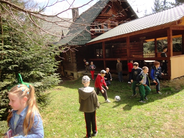 Dnia 22.04.2015r. klasy 2, 3a oraz 3b wybrały się na pieszą wycieczkę do Leśniczówki w Przysietnicy. Zbiórka odbyła się pod naszą szkołą i stąd wyruszyliśmy. Pogoda była piękna, więc z przyjemnością maszerowaliśmy wszyscy pod górę. W jedną stronę pokonaliśmy aż 4 km, byliśmy zmęczeni ale zadowoleni, że dotarliśmy do celu. Dzieci miały czas na zabawy, natomiast panie wychowawczynie wraz z rodzicami przygotowały smaczne kiełbaski z ogniska. Po sytym posiłku nabraliśmy siły by powrócić pod szkołę i rozejść się do domów.