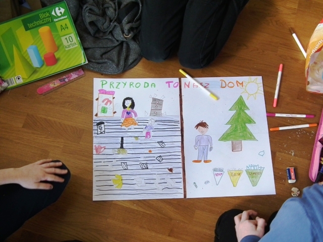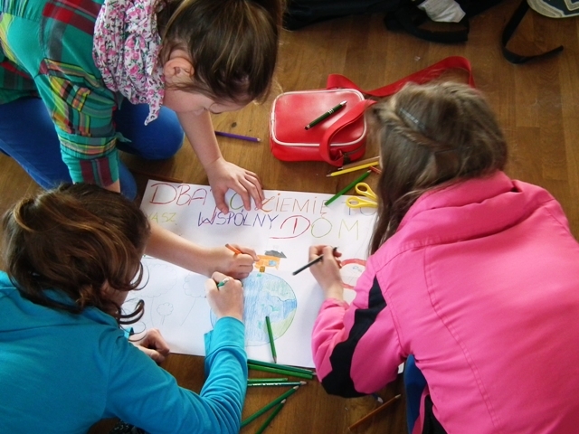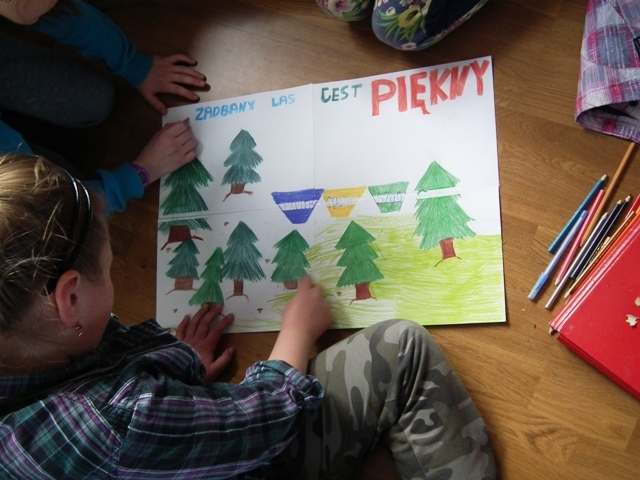 Pracując w grupach wykonali plakaty dotyczące ochrony środowiska.