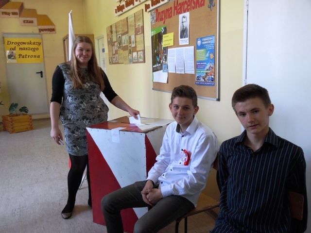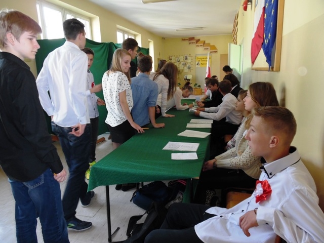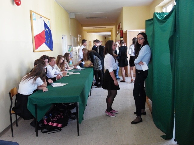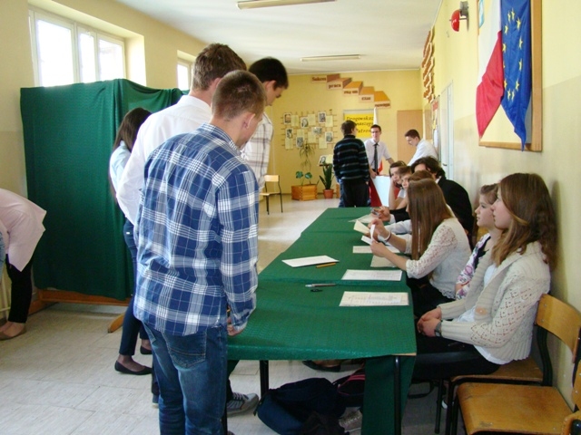 Lokal wyborczy został przygotowany przez uczniów klasy IIa zgodnie z zasadami ordynacji wyborczej. Młodzieżowa Komisja Wyborcza składająca się z uczniów gimnazjum w składzie: Izabela Kozioł, Magdalena Tomasiak, Aleksandra Ogorzały, Rafał Ogorzały, Hubert Aleksandrowicz, Artur Jankowski, Mariusz Plata, Klaudia Olszowska, Karolina Gizicka, Rafał Godawski czuwała nad przebiegiem wyborów. Karty do głosowania przygotowało Centrum Edukacji Obywatelskiej. Uprawnionych do głosowania było 91 uczniów, z tego głosów oddanych przez uczniów w dniu głosowania było 84. Młodzieżowa Komisja Wyborcza  przy przeliczaniu głosów uznała, iż głosów ważnych oddano 78, a nieważnych 6.