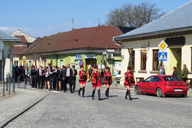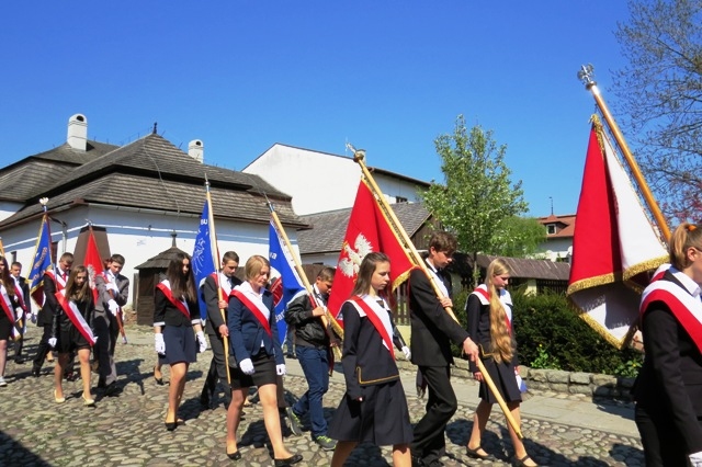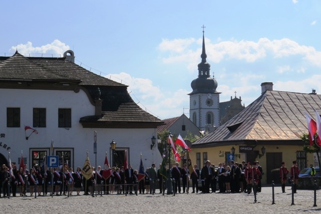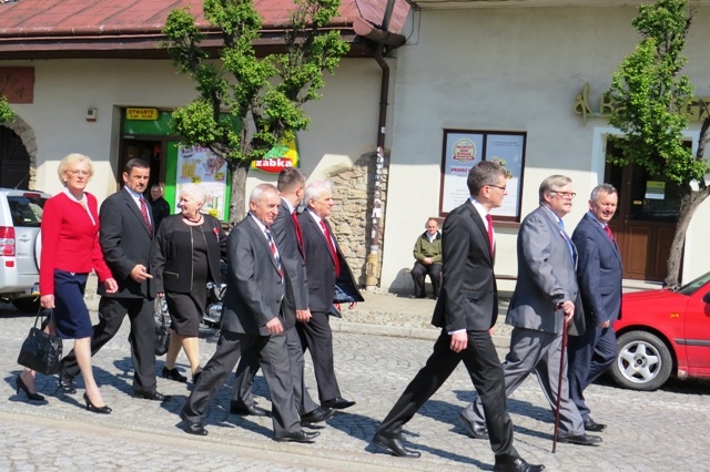 Trzeciomajowy pochód prowadziły starosądeckie Tambourmajorki oraz Miejska Orkiestra Dęta. W kolumnie maszerowały poczty sztandarowe: samorządowców, jednostek OSP oraz harcerze, nauczyciele i uczniowie, radni, burmistrzowie Starego Sącza i inni mieszkańcy, a także goście z Lambres-lez-Douai we Francji - partnerskiego miasta Starego Sącza.