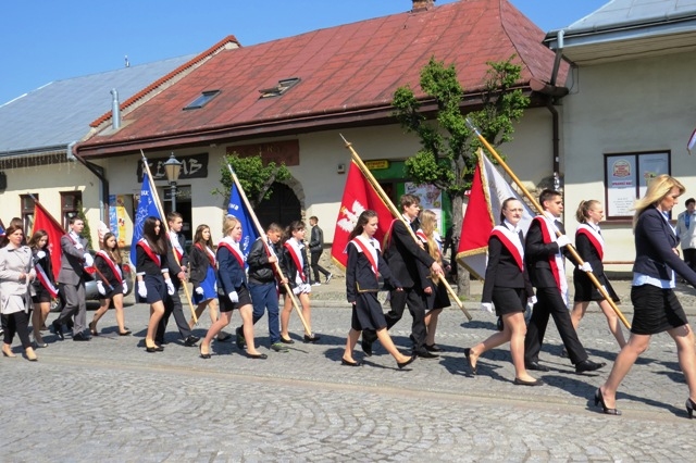 Przedstawiciele naszej szkoły z pocztem sztandarowym uczestniczyli w gminnych obchodach Święta Uchwalenia Konstytucji 3 Maja. Uroczystość rozpoczął przemarsz od „Sokoła” na starosądecki rynek.