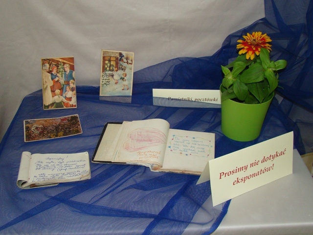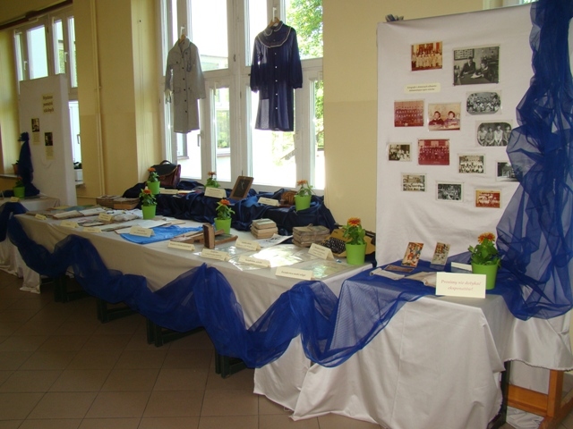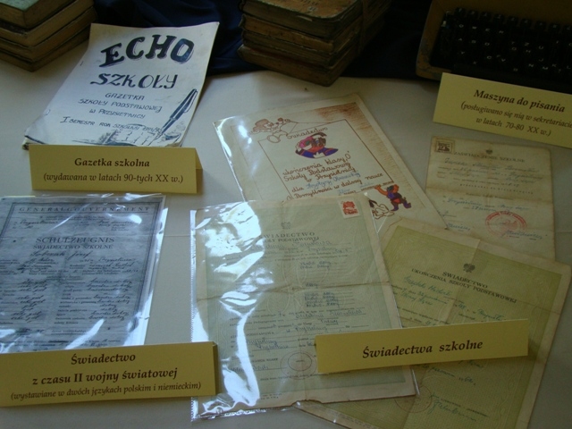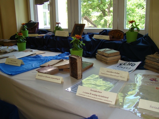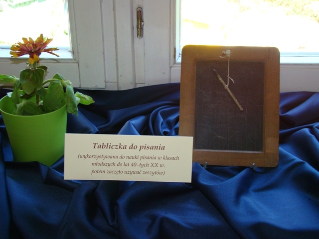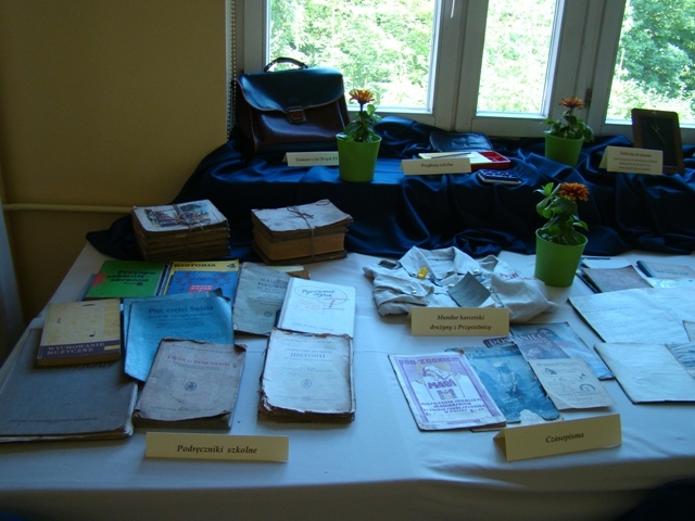 Można było obejrzeć stare świadectwa, podręczniki, zeszyty uczniów, szkolne fartuszki, harcerskie mundurki oraz dawne przybory szkolne: piórniki, tornister, a nawet starą maszynę do pisania. Atrakcją były wypożyczone z Muzeum Regionalnego w Starym Sączu tabliczka z rysikiem oraz drewniany kałamarz. Duże zainteresowanie dorosłych zwiedzających wystawę wzbudzały prezentowane fotografie, na których znajdowali swoich znajomych i krewnych.