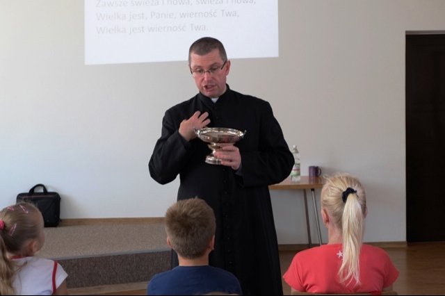 Spotkaliśmy się w remizie strażackiej o 9 rano i zaczęliśmy wspólną modlitwą. Oprócz dzieci obecni byli też niektórzy Rodzice oraz pani Agnieszka opiekująca się Przysietnicką biblioteką. Wszystkie obecne osoby przez cztery godziny, otwierało swoje serce i życie na Dobrą Nowinę głoszoną nam przez apostołów Jezusa ze Szkoły Nowej Ewangelizacji im. św. Kingi. Centralnym punktem rekolekcji była Eucharystia, sprawowana przez księdza Macieja w naszym kościele. Po niej nastąpiła adoracja Najświętszego Sakramentu, w trakcie której Pan Jezus błogosławił każdemu dziecku i dorosłym. Spotkanie z Jezusem, który kocha człowieka bezwarunkowo, przyniosło uczestnikom radość, pokój, miłość i wiele innych owoców, którymi Duch Święty obdarza hojnie tych, którzy pozwalają Mu w sobie działać i zapraszają Go do swojego życia. Zaskoczeni potęgą i czułością miłości Boga do człowieka, mogliśmy bez lęku uznać swój grzech i przyjąć na nowo przemieniającą moc Bożej Miłości. Nie zabrakło także małego „coś – niecoś” dla ciała, bo przecież zarówno dusza jak i ciało potrzebują pokarmu, aby żyć.