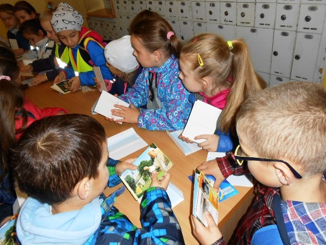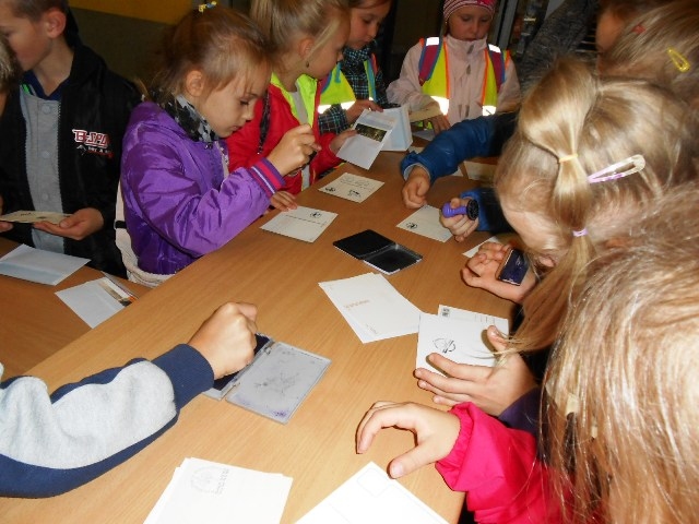 Kolejnym punktem wycieczki było spotkanie z pracownikiem poczty i rozmowa na temat pracy urzędników pocztowych. Krótkie warsztaty sprawiły dzieciom wiele radości.