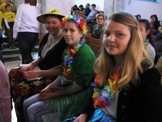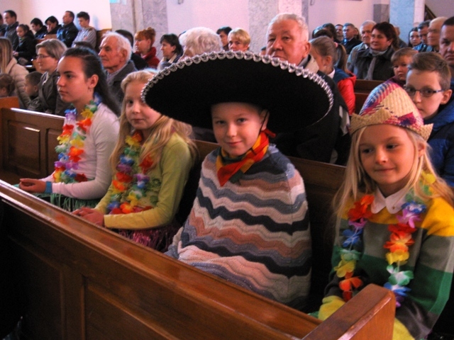 W niedzielę, 18 października 2015 r., przeżywaliśmy 89 Światowy Dzień Misyjny. Hasłem przewodnim były słowa - "Od nawrócenia do misji". Rozpoczął on również w Polsce Tydzień Misyjny (18-24.10.2015). Uczniowie naszej szkoły także wspierają misje uczestnicząc w projekcie Adopcji Serca, Kolędników Misyjnych, a przede wszystkim poprzez swoją modlitwę. Tym razem przygotowaliśmy oprawę misyjną niedzielnej Eucharystii w naszym kościele parafialnym. Przebrani w stroje dzieci z innych kontynentów modliliśmy się za naszych rówieśników i misjonarzy. Pamiętajmy, że wszyscy jesteśmy zaproszeni, aby poprzez modlitwę włączyć się w dzieło misyjne Kościoła. Na mocy chrztu jesteśmy misjonarzami. Czemu? Bo Kościół ze swej natury jest misyjny. Skierowany ku innym, skierowany od –do. Od Chrystusa, bo to On jest centrum misji, do człowieka.