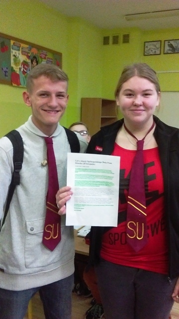 W tym dniu, w naszej szkole, każdej klasie odczytany został przez przedstawicieli Rady Samorządu Uczniowskiego list skierowany od Rzecznika Praw Dziecka, p. Marka Michalaka. Uczniowie z wielką uwagą słuchali słów skierowanych do nich: