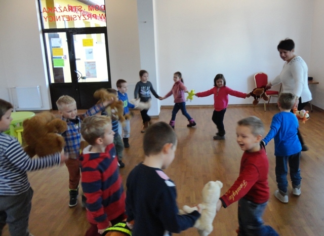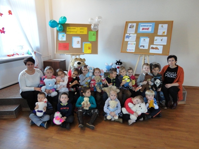 Zaproszone dzieci przyniosły ze sobą swoje pluszowe przytulanki, o których pięknie opowiadały. Zabawa była doskonała, wszyscy podziwiali dekoracje przygotowane specjalnie na tę okazję. W czasie spotkania nie zabrakło głośnego czytania opowiadań o misiach. Po przeczytaniu bajki dzieci z dużym zaangażowaniem wykonywały zakładki do książek w kształcie misia oraz brały udział w zabawie ruchowo-tanecznej do muzyki. Na zakończenie pani bibliotekarka podziękowała dzieciom za zorganizowanie misiom tak wspaniałego przyjęcia urodzinowego i wręczyła dzieciom słodkie upominki.