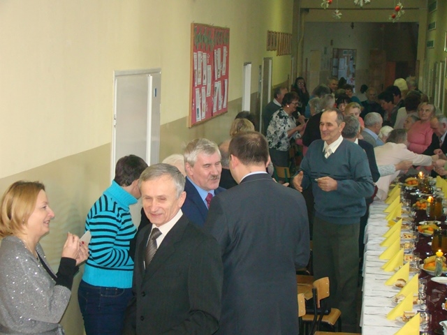 Po przedstawieniu, odbyła się Wigilia - wspólne łamanie się opłatkiem i poczęstunek oraz śpiewanie kolęd, któremu towarzyszył zespół wokalny wraz z nauczycielem akompaniującym - panem Krzysztofem Smydą.
