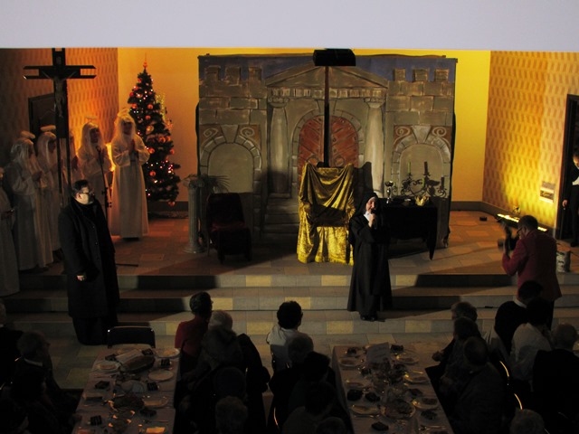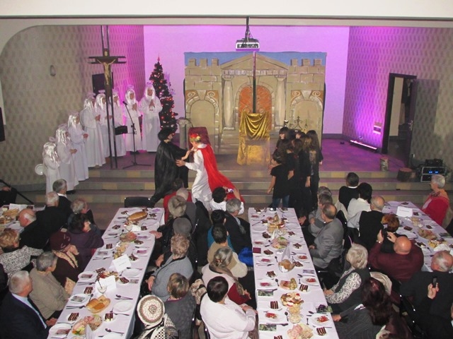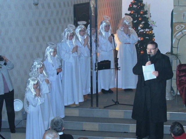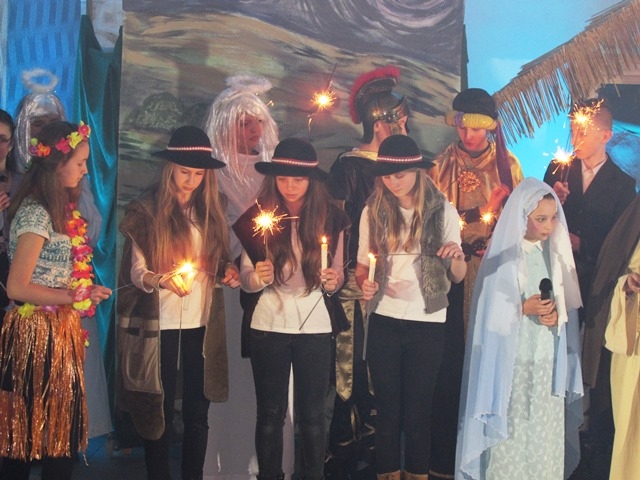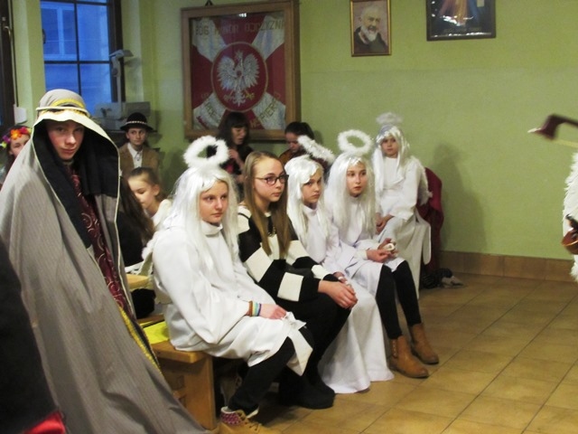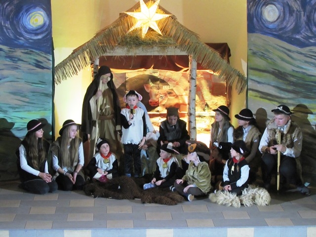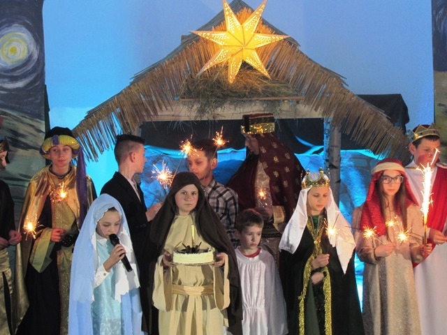 W niedzielne popołudnie 24 stycznia 2016 r. udaliśmy się do parafii pw. Najświętszego Serca Pana Jezusa w Nowym Sączu na zaproszenie Biura Radia Maryja z naszym przedstawieniem jasełkowym pt. „Książę Pokoju” z okazji noworocznego spotkania członków działających na Sądecczyźnie, Biur i Kół Rodziny Radia Maryja. Zostaliśmy uroczyście powitani wraz z gośćmi przez o. Stanisława Jopka SJ – proboszcza parafii. Wśród zaproszonych gości byli o. dr Zdzisław Klafka - rektor Wyższej Szkoły Kultury Społecznej i Medialnej z Torunia, dr Paweł Pasionek – prodziekan WSKSiM z trójką tamtejszych studentów , a także z naszego terenu ks. prałat Stanisław Czachor z parafii św. Kazimierza w Nowym Sączu, ks. prałat Kazimierz Starzec – proboszcz parafii z Wielogłów i o. Antoni Drąg SJ z Bytomia. Byli również przedstawiciele władz samorządowych i powiatu: Wiceprezydent Nowego Sącza Wojciech Piech, Przewodnicząca Rady Miasta Bożena Jawor, Radny Krzysztof Żyłka, Radny Antoni Poręba, przedstawiciele parlamentu: Senator Stanisław Kogut, Poseł Jan Duda, Poseł Józef Leśniak, Poseł VII kad. Andrzej Romanek, Prezes PTH Leszek Zakrzewski, Przew. Oddz. Zw."Solidarność" Krzysztof Kotowicz, Fund. SOS Rodzinie dr Krystyna Zając, Przew. Klubu "Gazety Polskiej" Tomasz Baliczak oraz przedstawiciele Biur i Kół Radia Maryja z Gorlic, Grybowa, Nawojowej, Krużlowej, Limanowej, Mystkowa, Wielogłów, Matki Bożej Niepokalanej z Nowego Sącza, Bazyliki Św. Małgorzaty z Nowego Sącza oraz Biura RM Parafii Kolejowej, które to spotkanie zorganizowało. Występ wszystkim bardzo się spodobał . Na zakończenie słowa podziękowania wyraził Ojciec Wiesław Pawłowski SJ, opiekun Rodziny Radia Maryja z tamtejszej parafii. Pomimo ferii nasi uczniowie nie zawiedli, za co im serdecznie dziękuję. Szczególne podziękowania kieruję do p. Tomasza Skuta za transport samochodowy oraz pracę przy przewiezieniu całej dekoracji, rekwizytów i strojów, a także p. Anny Figarskiej, p. Jerzego Ogorzałego, Wacława Majerskiego. Za obecność, opiekę nad dziećmi, wszelką pracę wyrażam wdzięczność p. Małgorzacie Jarząb, p. Magdalenie Cieślewicz, p. Danucie Rostockiej i p. Karolinie Botwinie. Relacja z wydarzenia wraz ze zdjęciami, umieszczona jest także na stronach: miasta Nowy Sącz, ogólnopolskiej stronie Radia Maryja, Parafii Kolejowej w Nowym Sączu, Wyższej Szkoły Komunikacji Społecznej i Medialnej w Toruniu. Fragmenty z przedstawienia były także transmitowane w Telewizji Trwam. Pozdrawiamy gorąco Organizatorów z Nowego Sącza i dziękujemy za zaproszenie.