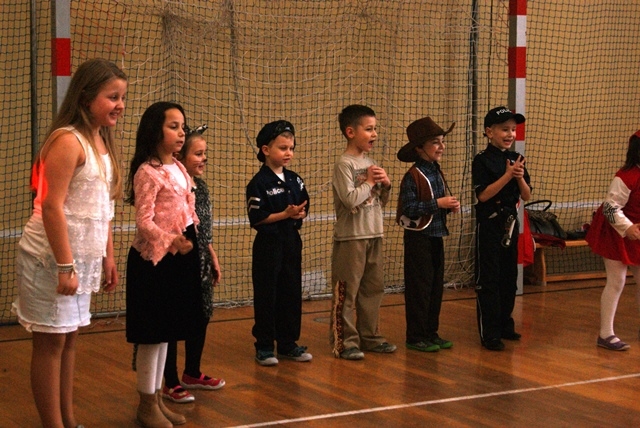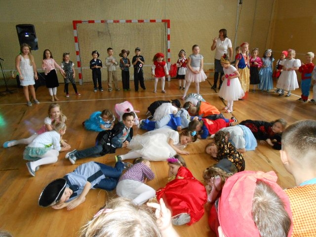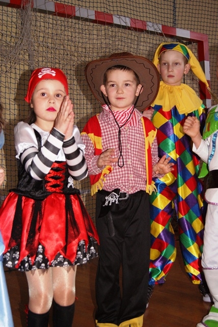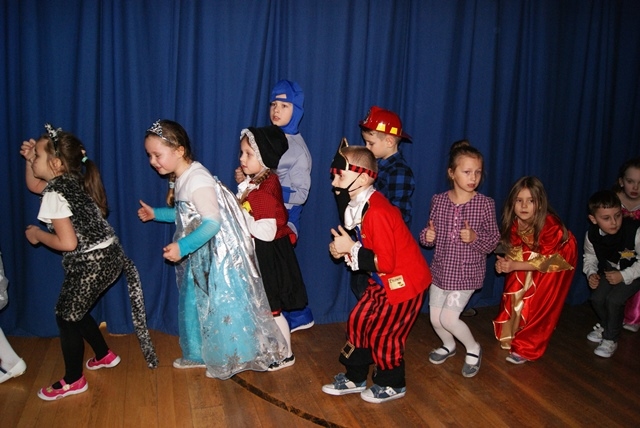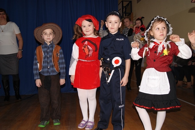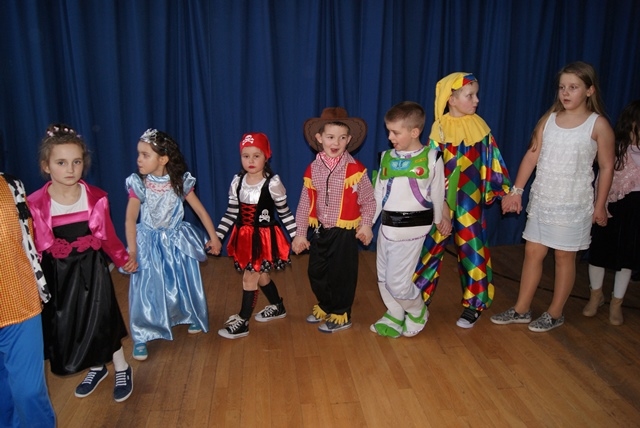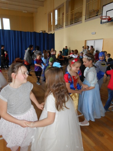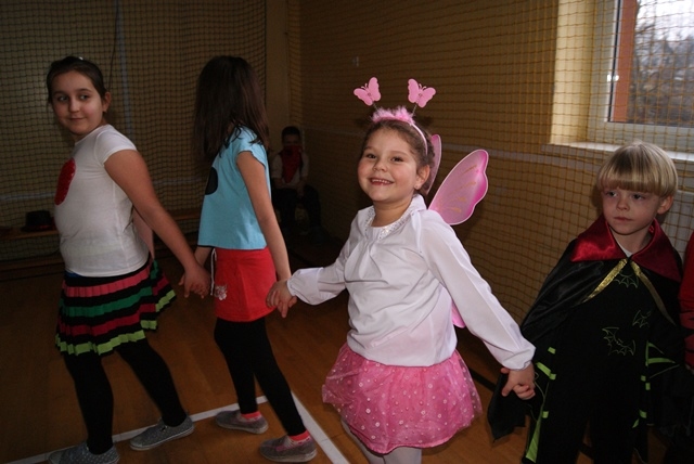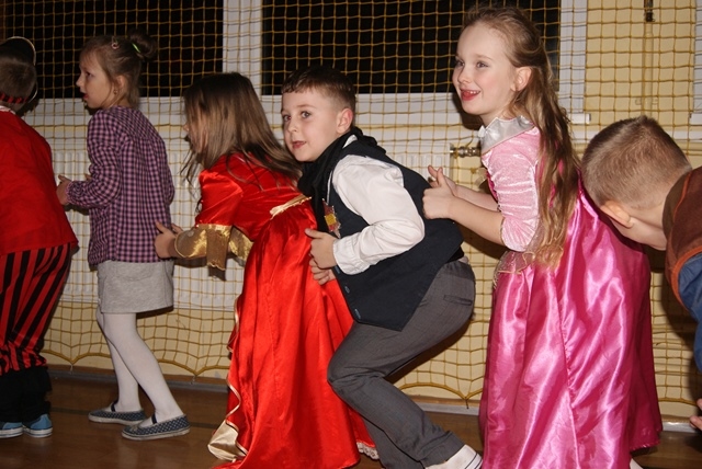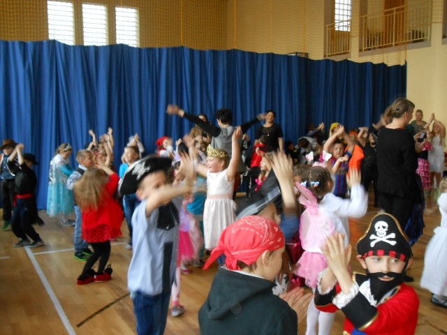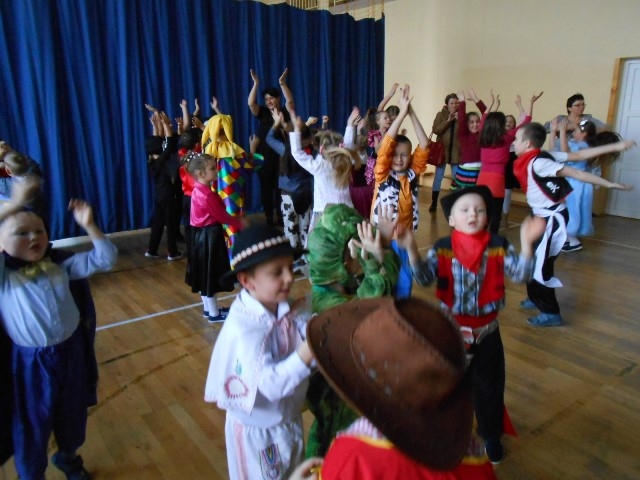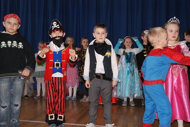 1lutego 2015r uczniowie klas 0-III bawili się na zabawie karnawałowej. Dzieci przebrane były za różne postacie, kostiumy były pomysłowe i bardzo kolorowe. Zabawę prowadził wodzirej z Nowego Sącza. Tańce przeplatane były różnymi konkursami. Zwycięscy konkursów nagradzani byli głośnymi brawami i słodyczami. Jak co roku rodzice przygotowali pyszny poczęstunek dla wszystkich uczniów.