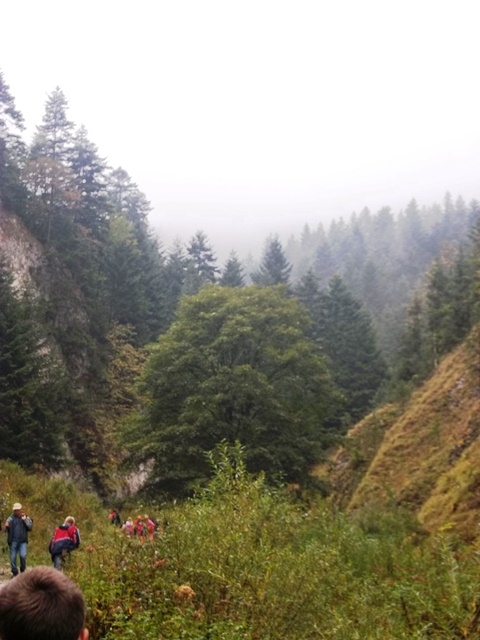 Piękna złota polska jesień to najlepsza pora na górskie wędrówki. Tym razem 19.09.2015r. wybraliśmy się w Pieniny, by zdobyć szczyt Trzy Korony (982 m n.p.m.). Niestety pogoda nam nie dopisała. Ale nie zrezygnowaliśmy! W strugach deszczu wyruszyliśmy autokarem z Przysietnicy w kierunku Krościenka. Ku naszej uciesze w okolicach Krośnicy niebo przejaśniało i opady ustały. Odetchnęliśmy z ulgą.