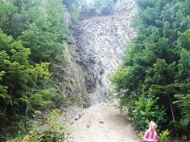Wyszliśmy ze Sromowiec Niżnych przez malowniczy Wąwóz Sopczański, ze strzelistymi ścianami i piargami, gdzie w załomach skalnych kwitną rzadkie okazy roślin. Na Trzy Korony doszliśmy przez przełęcz Szopka szlakiem niebieskim. Dawniej przełęcz nazywana była też Chwała Bogu, gdyż ludzie przemierzający Pieniny stromym przejściem od strony Krościenka, wydawali tu westchnienie ulgi. Kiedy wyszliśmy na górę, miało się wrażenie, że wznieśliśmy się nad burzliwe wielkie morze. Ze szczytu, przez kilkudziesięciometrowe metalowe schody, szliśmy gęsiego na taras widokowy. Słyszeliśmy, że wytężając wzrok z tego miejsca można dostrzec nawet Babią Górę. My jednak widzieliśmy głownie mgłę. Wędrując w dół do Krościenka, zeszliśmy z trasy żółtej i szlakiem niebieskim powędrowaliśmy przez jodłowo-bukowy las do ruin Zamku Pienińskiego. W grocie, wydrążonej na początku XX wieku w Górze Zamkowej, umieszczono naturalnej wielkości figurę św. Kingi, przy której właśnie odprawiano mszę św. My jednak pospiesznie schodziliśmy w dół, bo niebo pokryły gęste chmury i znów zaczęło padać.
