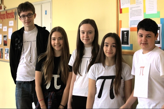 14 marca obchodzimy Międzynarodowy Dzień Liczby (p » 3,14). W tym dniu uczniowie z klasy II Gimnazjum: Aleksandra Barnach, Paulina Durasik, Katarzyna Michalik, Afrodita Poniewierska, Kamil Kukuczka i Łukasz Durasik przybliżyli społeczności szkolnej znaczenie i wartość tej liczby.