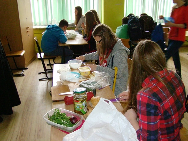 Uczniowie gimnazjum w tym dniu przygotowywali wspólnie w klasach zdrowe śniadanie i uczestniczyli w warsztatach dotyczących zdrowego stylu życia.