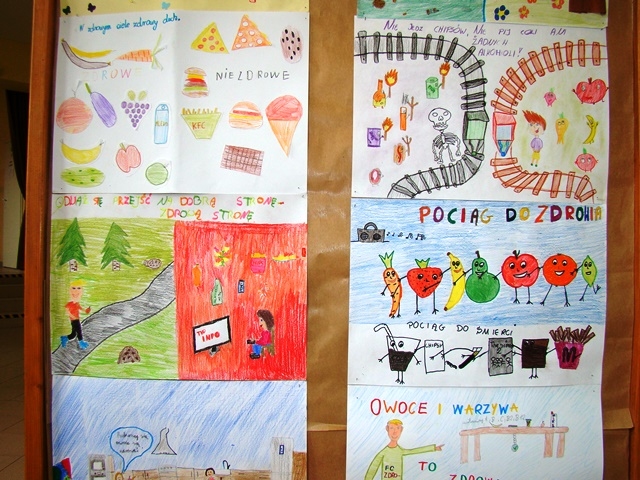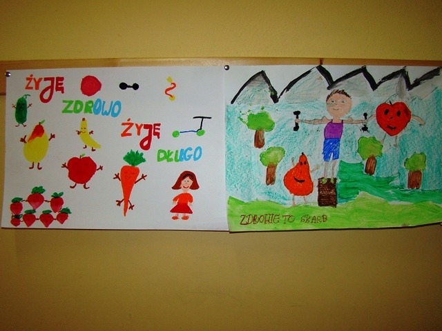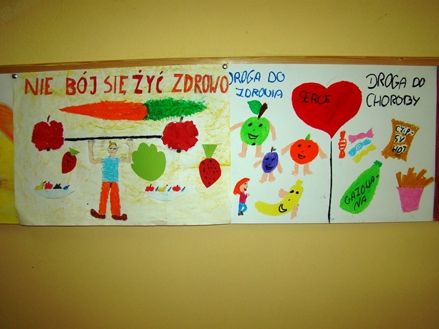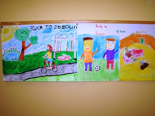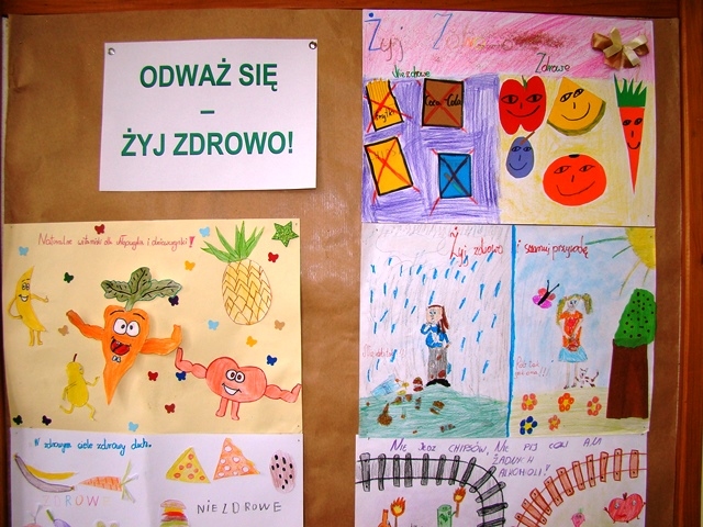 W pierwszym dniu wiosny uczniowie klas IV – VI w ramach realizacji programu Trzymaj formę wykonywali prace plastyczne pt. „Odważ się – żyj zdrowo!” Galeria prac uczniów zdobi korytarz szkolny i zachęca oglądających do prowadzenia zdrowego trybu życia.