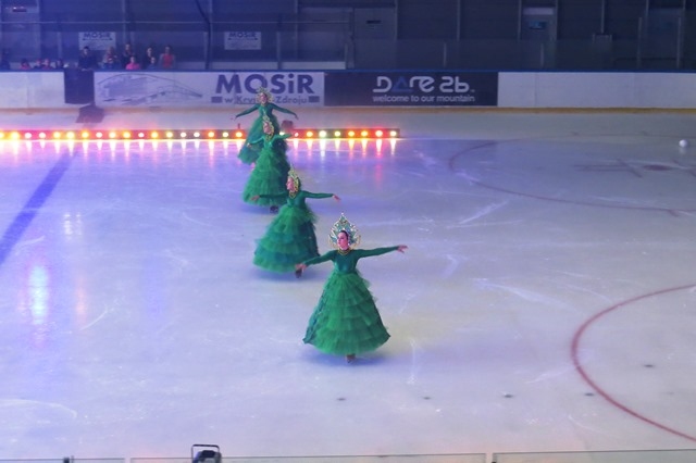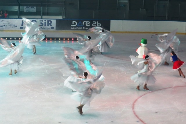 Niska temperatura panująca na lodowisku nie przeszkodziła nam w pełnym skupieniu i podziwianiu widowiska.