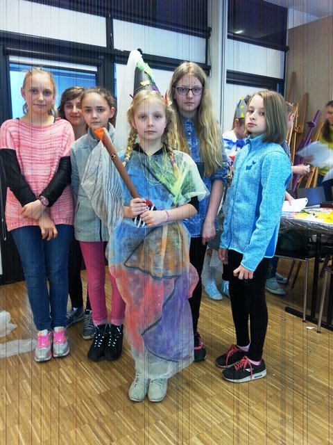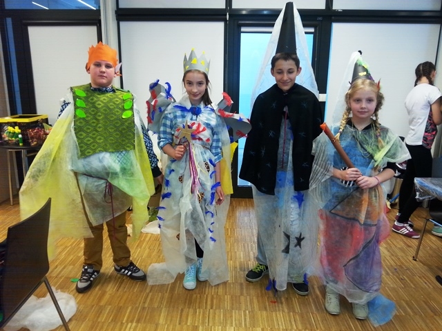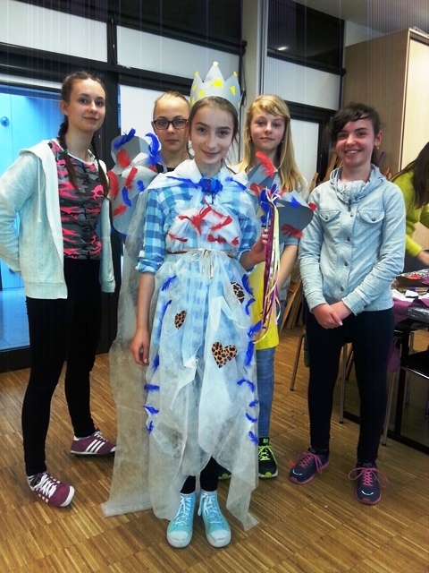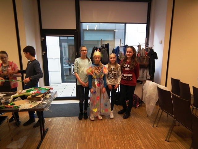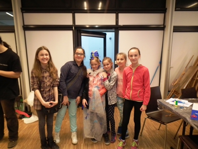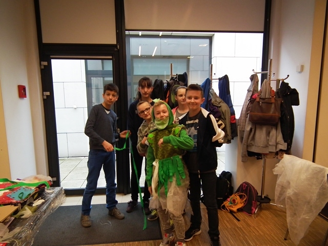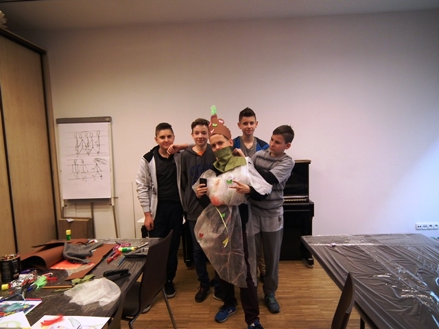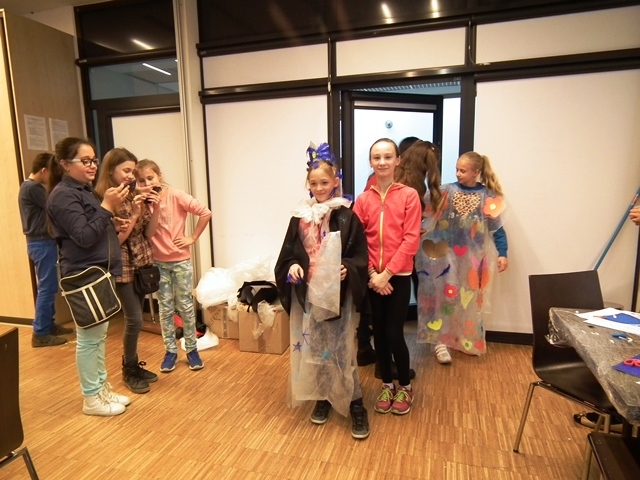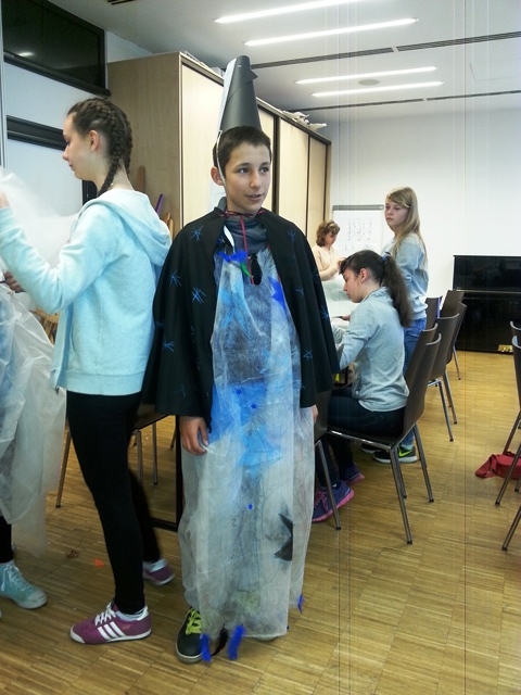 Część uczniów wybrała warsztaty edukacyjne „Peleryna gwiazdami uszyta”. Uczestnicy zapoznali się z pracą kostiumografa teatralnego, obejrzeli multimedialny pokaz przedstawiający kostium teatralny, została omówiona jego rola i znaczenie w teatrze. Uczniowie byli aktywowani w sposób twórczy do pracy. Podczas pracy w grupach, przy pomocy elementów strojów oraz rekwizytów dobierali odpowiedni kostium do postaci. Następnie zaprojektowali i wykonali kostium dla bohaterów wybranego przedstawienia. Uczestnicy rozwijali swoją wrażliwość estetyczną tkwiącą w sztuce oraz kształtowali nawyki uważnego słuchania i świadomego odbioru dzieła teatralnego.