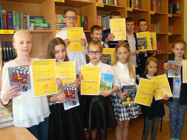 Z radością informujemy, że wszyscy uczniowie, którzy wzięli udział w konkursie plastycznym ”Odkrywcy – spotkania z historią” zostali obdarowani wartościowymi nagrodami książkowymi. Konkurs był organizowany przez wydawnictwo Literatura przy okazji spotkania autorskiego z pisarką Grażyną Bąkiewicz w ramach V MAŁOPOLSKICH SPOTKAŃ Z MŁODYMI CZYTELNIKAMI „Z KSIĄŻKĄ NA WALIZKACH” organizowanych przez Powiatową i Miejsko-Gminną Bibliotekę Publiczną w Starym Sączu.