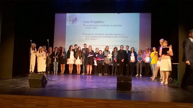 Dnia 13.05.2016 roku młodzież naszego Gimnazjum uczestniczyła  w etapie rejonowym prezentacji szkolnych projektów podsumowujących małopolski projekt „Mieć Wyobraźnię Miłosierdzia”. Prezentacje szkół naszego rejonu miały miejsce w kinie „Sokół” w Starym Sączu. W tym roku dziewięć szkół (gimnazjalnych i ponadgimnazjalnych) przedstawiło całoroczną pracę na rzecz potrzebujących.