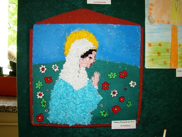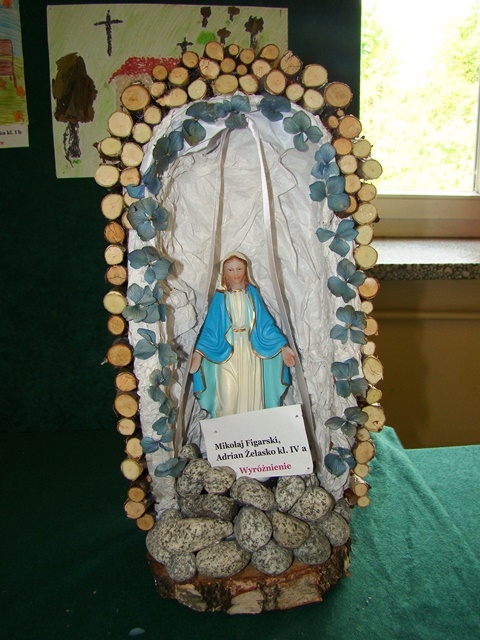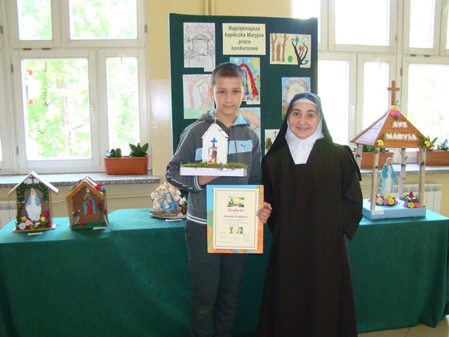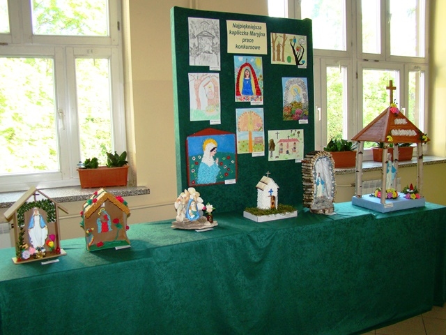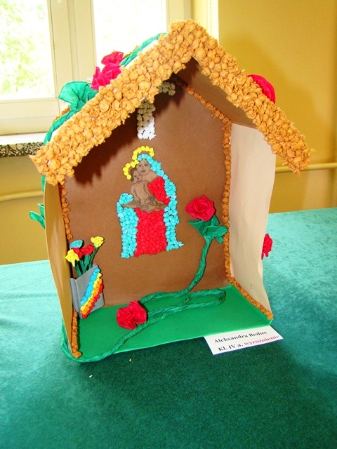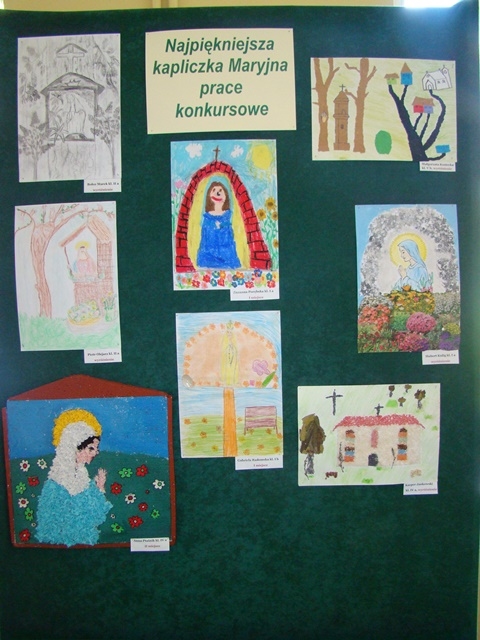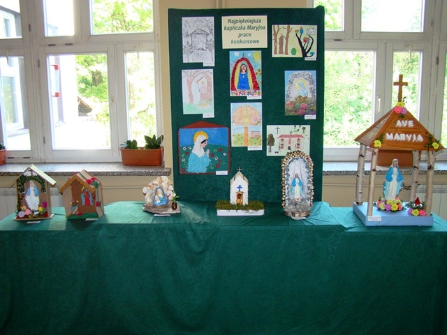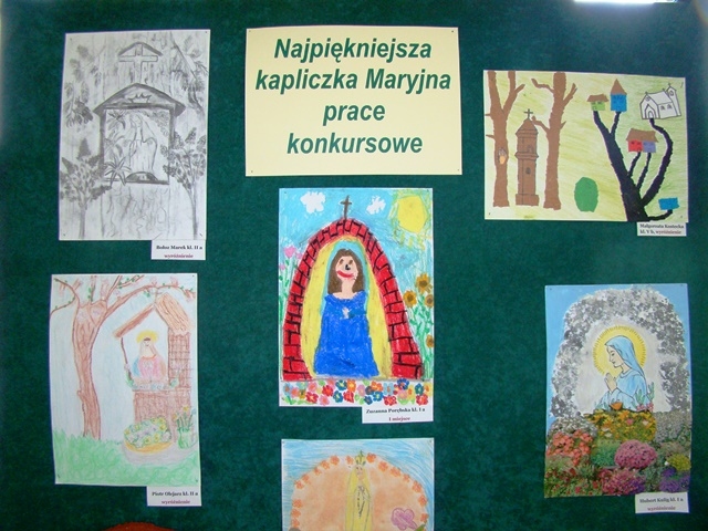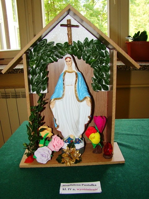 Dziękujemy serdecznie wszystkim piętnastu uczniom, którzy wzięli udział w szkolnym konkursie na wykonanie najpiękniejszej Kapliczki Maryjnej zorganizowanym z inicjatywy s. Roseliny. Prace zrobione zostały różnymi technikami. Gratulujemy pomysłów i doceniamy duże zaangażowanie Rodziców. Jednakże przy wyborze najciekawszej prezentacji komisja konkursowa wzięła pod uwagę samodzielną pracę dziecka.