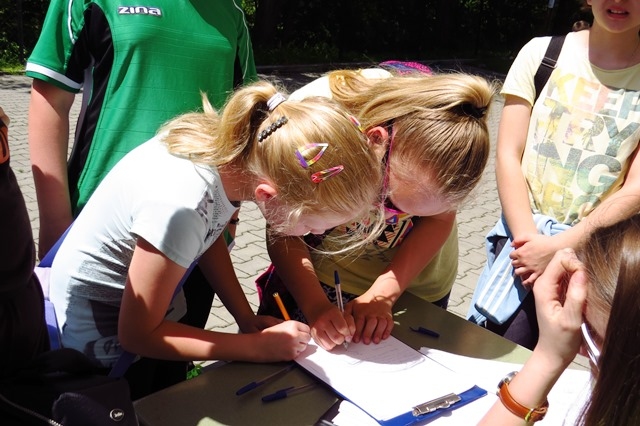 Uczestnicy otrzymali też schematyczną mapę i udali się na trasę rajdu tradycyjnie ustaloną i oznakowaną przez harcerzy i ich opiekunów. Na kolejnych punktach kontrolnych tras rajdowych Harcerze: Hubert Citak, Paulina Czerpak, Agnieszka Kościsz, Jakub Olszowski, Aleksandra Kulig, Izabela Skotnicka, Eryk Rusin, Mateusz Tomasiak, Karolina Garwol, Emilia Garwol, Anna Ptaśnik, Kacper Jankowski, Julia Dudek, Weronika Ptaśnik , pełnili służbę, kontrolując czas i samodzielność wykonywania zadań. Do ich obowiązków należało również kierowanie ruchem klas i wskazywanie dalszej drogi wędrującym. Uczniowie poszczególnych klas w czasie rajdu rozwiązywali na punktach kontrolnych testy z wiedzy ogólnej podzielone na kategorie przedmiotowe, przygotowane przez nauczycieli uczących w danych klasach. Był więc test z: przyrody, matematyki, języka polskiego, języka angielskiego, historii i muzyki. Mimo, iż była to forma sprawdzianu uczniowie z zaangażowaniem podejmowali pracę. Dla wielu z nich motywujące było konsultowanie się z grupą i wspólne ustalenie wyników danego zadania.