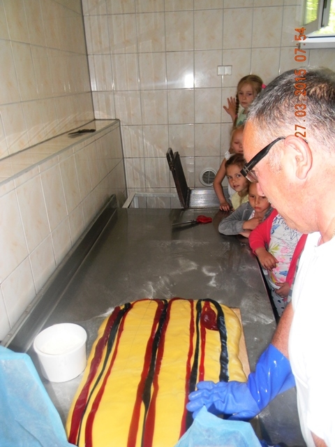 Dnia 1.06.2016r. dzieci z oddziałów przedszkolnych udały się na wspaniałą wycieczkę, odwiedzając ciekawe miejsca w Przysietnicy. Pierwszym miejscem był Zakład Cukierniczo-Karmelarski u Pana Tadeusza Madziara. Dzieci mogły tam zapoznać się z procesem powstawania cukierków, lasek i innych słodkości, które można kupić na odpustowych straganach. Mogliśmy oglądnąć ten proces od początku czyli od rozpuszczenia cukru aż do 1700 C poprzez zabarwianie, aromatyzowanie oraz formowanie kształtu cukierków. Dzieci mogły samodzielnie ukształtować masę cukrową w laskę, serce lub inny dowolny kształt. Wszyscy otrzymaliśmy w prezencie cukierki oraz słodkości, które sami uformowaliśmy. Jest to niesamowite miejsce w którym dowiedzieliśmy się wielu ciekawych informacji.