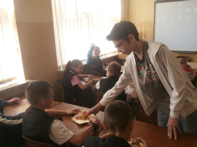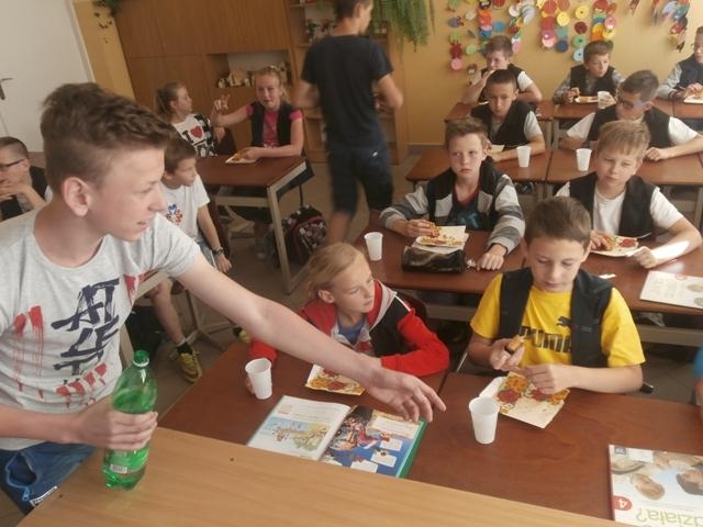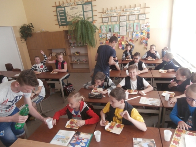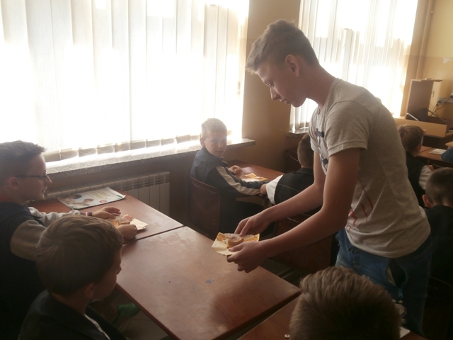 Na zakończenie uczniowie klasy 4b zostali poczęstowani jabłecznikiem, który został upieczony przez uczniów realizujących projekt.