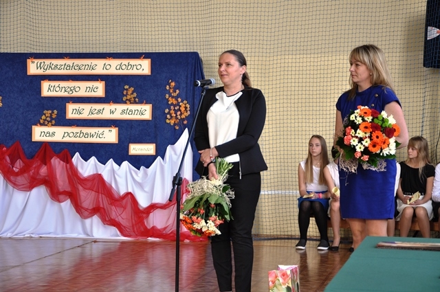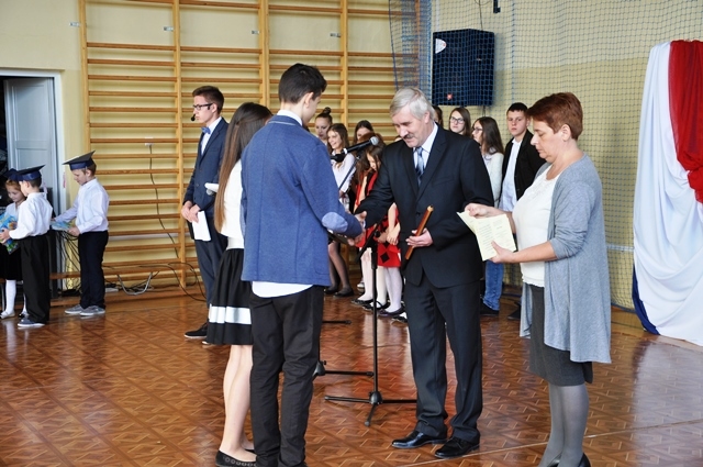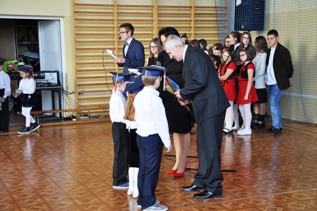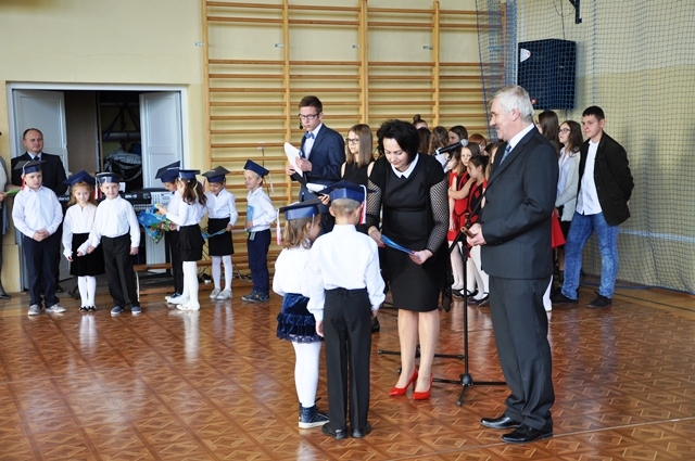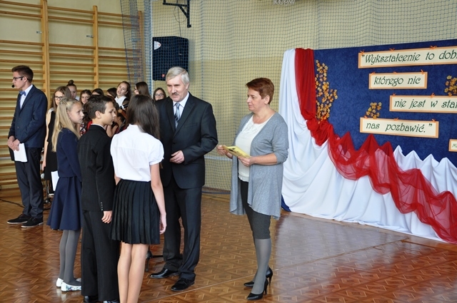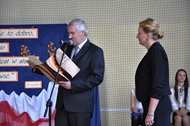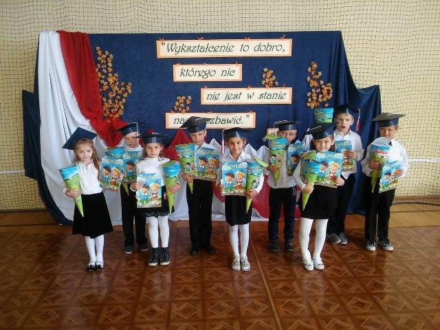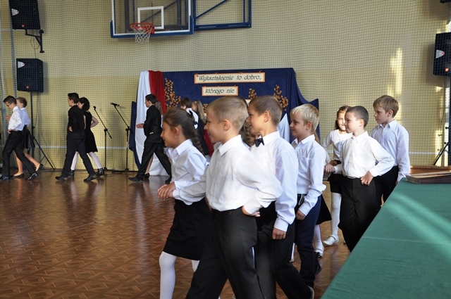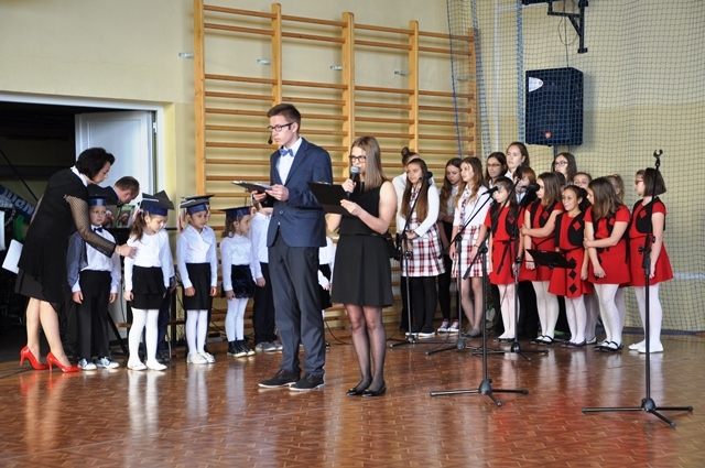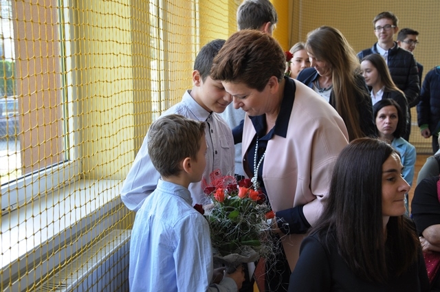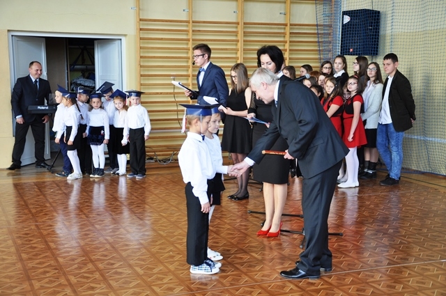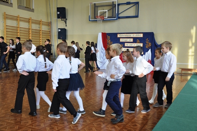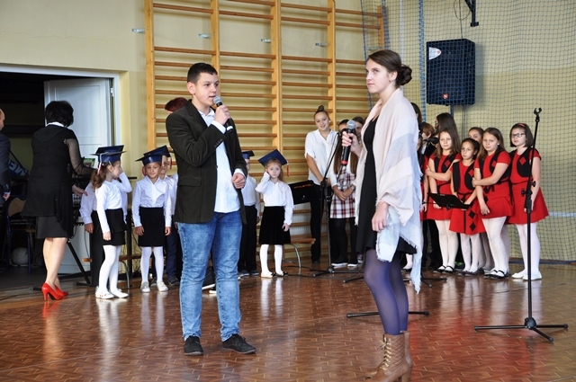 14 października w Zespole Szkół w Przysietnicy to nie tylko coroczne święto wszystkich nauczycieli i pracowników szkoły, ale przede wszystkim dzień ślubowania uczniów klas pierwszych Szkoły Podstawowej i Gimnazjum. Uroczystości rozpoczęła Msza Święta pod przewodnictwem Jana Wąchały – proboszcza przysietnickiej parafii. Następnie wszyscy uczniowie, nauczyciele i rodzice prowadzeni przez poczet sztandarowy udali się do budynku szkoły, by tam kontynuować świętowanie. Tradycyjnie już rozpoczęto je od poloneza zatańczonego przez uczniów klas pierwszych obu szkół. Choć dla wielu takie przedsięwzięcie polegające na połączeniu w jednym tańcu uczniów tak zróżnicowanych wiekowo mogłoby okazać się niemożliwe, to jednak w naszej szkole udaje się znakomicie. Niewątpliwie jest to zasługa nauczyciela muzyki – pana Krzysztofa Smydy, który już od początku września przygotowuje pierwszaków do tego ważnego dla nich wydarzenia. Oczywiście nie obyłoby się bez wsparcia pani Aliny Citak – nauczycielki klasy pierwszej szkoły podstawowej. Niemniej jednak finalny efekt wzbudził zachwyt wszystkich obecnych. Pierwszoklasiści wspaniale zatańczyli poloneza i tym samym rozpoczęli podniosłą uroczystość. Zanim jednak zaczęto ceremonię ślubowania, zaprezentowano scenkę rodzajową w wykonaniu Katarzyny Opoki i Huberta Citaka – uczniów klasy drugiej gimnazjum, a zarazem członków koła teatralnego. Potem już wydarzenia potoczyły się według określonego schematu. Wprowadzono poczet sztandarowy i odśpiewano hymn państwowy. Następnie swoje umiejętności wokalno-recytatorskie zaprezentowali najmłodsi uczniowie oraz pierwszoklasiści gimnazjalni. Dominowała tematyka patriotyczna, wynikająca z charakteru wydarzenia, jak i miana szkoły noszącej imię wielkiego Polaka i patrioty kardynała Stefana Wyszyńskiego. Takie dziedzictwo zobowiązuje. Główną częścią uroczystości było ślubowanie na sztandar szkoły, a następnie pasowanie pierwszoklasistów i przyjęcie ich w poczet uczniów przez dyrektora - pana Aleksandra Łukasika. W tym roku do naszej społeczności szkolnej dołączyło 9 uczniów z pierwszej klasy szkoły podstawowej i 25 z gimnazjum. Druga część, już mniej oficjalna związana była z Dniem Komisji Edukacji Narodowej – więc poświęcona nauczycielom i uczniom. Ta tematyka zdominowała krótki program artystyczny w wykonaniu stremowanych, ale jakże przejętych swoimi występami uczniów klasy Vb. Program poetycki przeplatany został piosenkami w wykonaniu zespołów muzycznych „Amadeo” i „Słoneczka” pod kierunkiem pana Krzysztofa Smydy – nauczyciela muzyki. Potem zabrał głos pan Aleksander Łukasik – dyrektor Zespołu Szkół w Przysietnicy, który oficjalnie powitał zaproszonych gości – pana Kazimierza Ptaśnika –radnego i sołtysa wsi oraz emerytowanych nauczycieli i pracowników szkoły, a następnie nauczycielom wyróżniającym się w pracy dydaktyczno – wychowawczej oraz pracownikom obsługi wręczył nagrody. W dalszej części przyszedł czas na życzenia dla nauczycieli, które na ręce dyrekcji – pana Aleksandra Łukasika i pani Anny Golonka złożyła pani Agnieszka Olszowska – przewodnicząca Rady Rodziców. Najmilsze i najbardziej wzruszające jednak dla nas nauczycieli były szczere życzenia od uczniów - najlepszych i najbardziej sprawiedliwych recenzentów naszej pracy. One to zakończyły część oficjalną uroczystości. Potem uczniowie klas pierwszych wraz z wychowawcami udali się do klas na spotkania. Podsumowując, warto dodać, że prowadzącymi akademię byli „etatowi” konferansjerzy – Joanna Stawiarska i Dariusz Godawski – uczniowie klasy trzeciej gimnazjum, którzy jak zwykle świetnie wywiązali się ze swej roli. O nich prawie nigdy się nie wspomina, ale ich udział dodaje powagi i doniosłości – to członkowie pocztu sztandarowego naszej szkoły w składzie: Aleksandra Ogorzały, Ewelina Weselak, Kacper Tokarczyk – uczniowie trzeciej klasy gimnazjum. Wymowna w swej treści, a zarazem efektownie wykonana dekoracja to przede wszystkim dzieło pani Renaty Jachimczak – nauczyciela bibliotekarza oraz pani Aliny Citak – wychowawczyni klasy pierwszej szkoły podstawowej. O przygotowanie sali gimnastycznej zadbał pan Piotr Jarząb – nauczyciel wychowania fizycznego, któremu pomocą służył pan Stefan Citak – konserwator oraz oczywiście uczniowie gimnazjum. Nie można również zapomnieć o rodzicach, którzy przygotowali swoje dzieci na tę ważną dla nich chwilę w uczniowskim życiu i wzruszeni uczestniczyli z nimi w uroczystości. Wszystkim tym osobom należą się słowa uznania i wdzięczności.