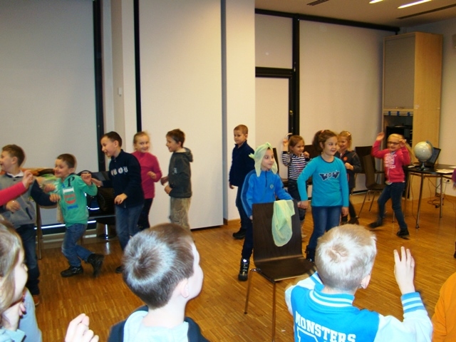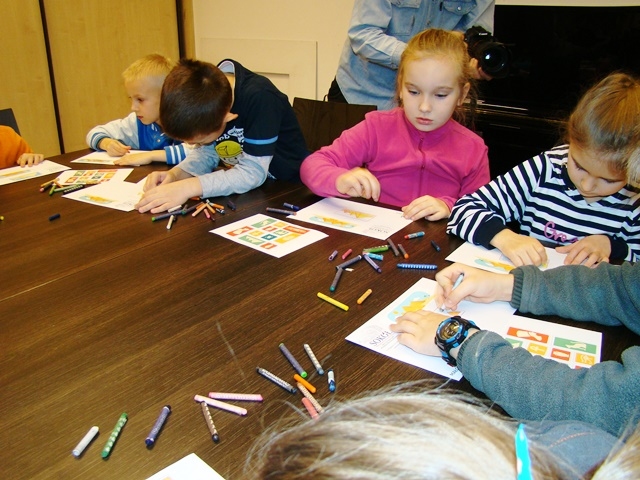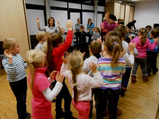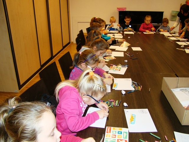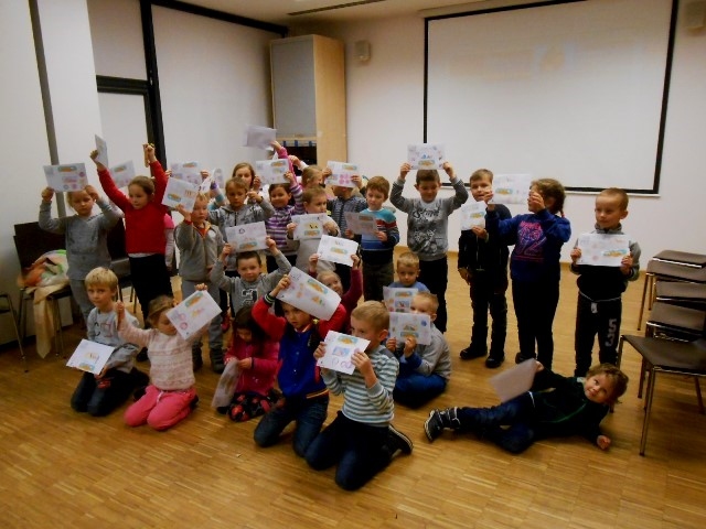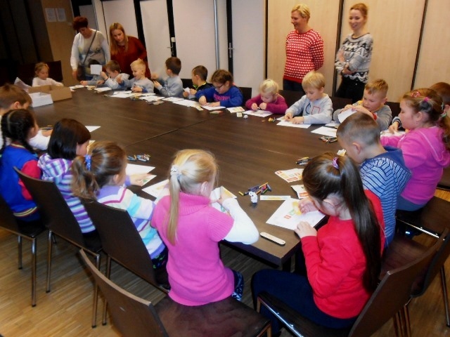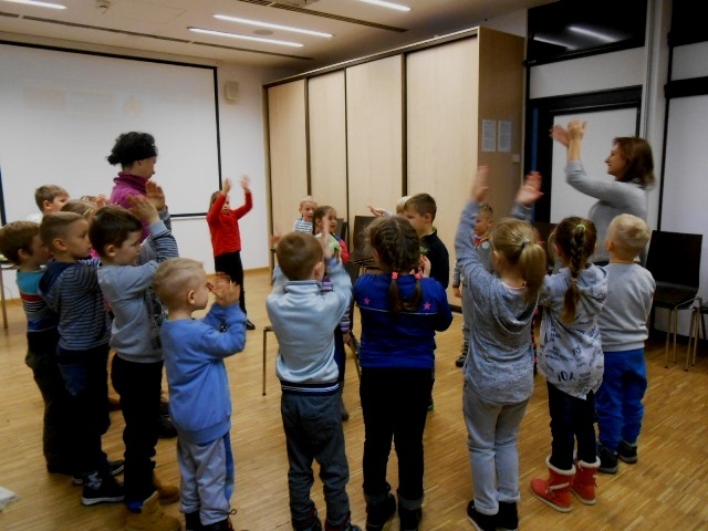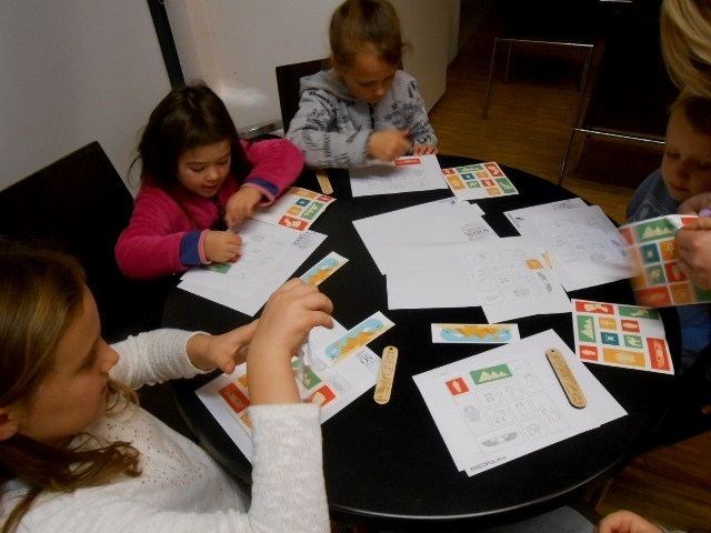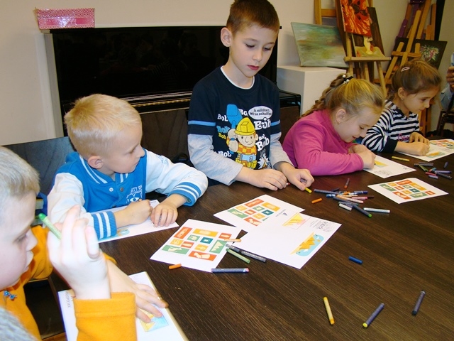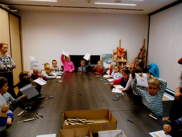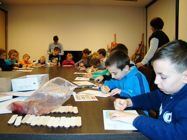 Spotkanie rozpoczęło się od prezentacji odcinka z serii „Bolek i Lolek wyruszają w świat”, stał się on punktem wyjścia do dalszych działań twórczych. Po seansie nastąpiła interaktywna rozmowa prowadzącej zajęcia wraz z uczestnikami dotycząca obejrzanego filmu, wprowadzała dzieci do pracy w formie warsztatowej. Wystarczyło tylko jedno zakręcenie globusem, aby wraz z Bolkiem i Lolkiem twórczo i aktywnie zwiedzać świat. Dzieci samodzielnie projektowały kopertę za pomocą pieczątek i naklejek, kolorowały drewnianą tabliczkę z hieroglifami. Na zakończenie przy muzyce i pląsach uczyły się wiązać turban. Poprzez zabawę pobudzana była wyobraźnia dzieci i chęć poznawania świata.
