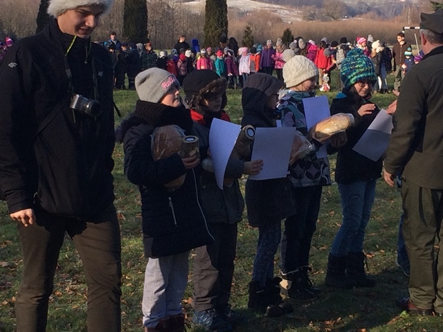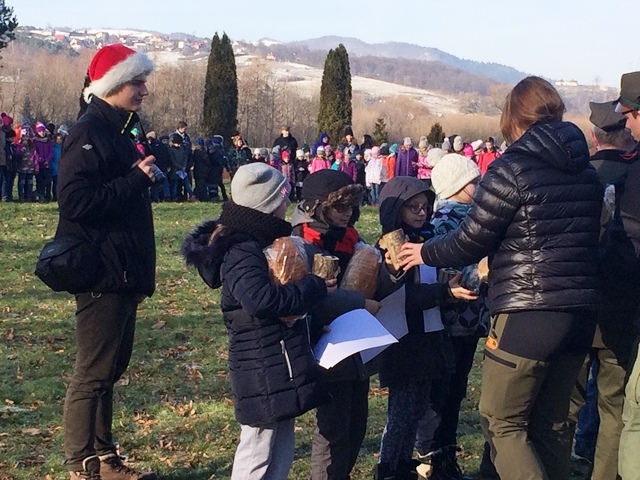 Po zakończeniu biegu wszyscy uczestniczyli w spotkaniu z Mikołajem. Mikołaj poprosił wszystkich, aby pomogli mu w przygotowaniu paczek dla dzieci z Ukrainy. Każdy zuch i harcerz chętnie podzielił się swoim prezentem.