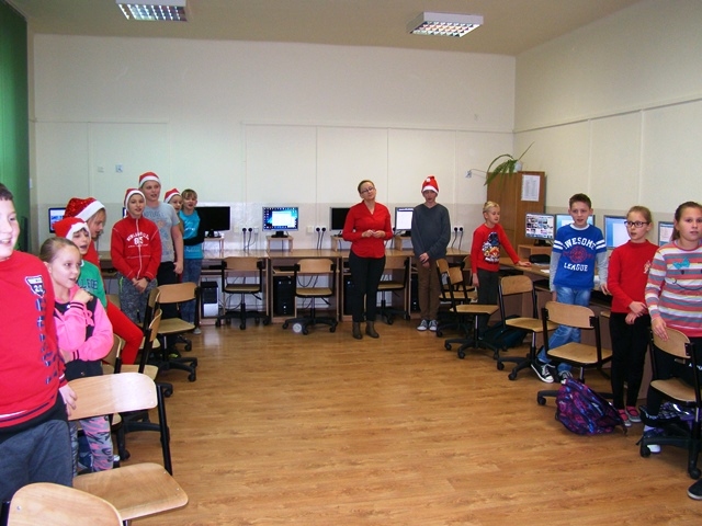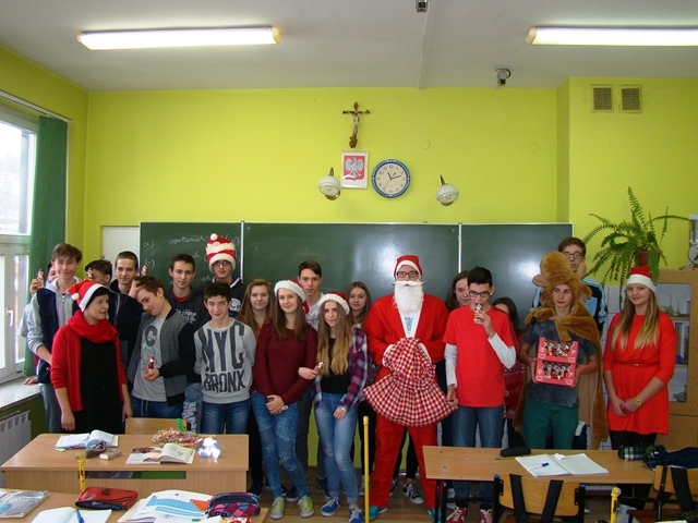 Jak co roku Samorząd Uczniowski organizuje w naszej Szkole Mikołajki. W tym roku 6. grudnia był to dzień bez mundurka, w kolorach świątecznych: czerwonym i zielonym. Każdy uczeń przyszedł w ten dzień ubrany w te kolory i w mikołajkowej czapce.