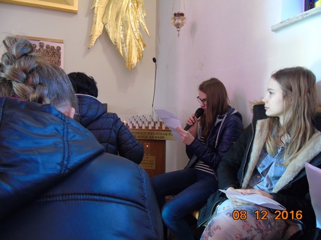 Jednym z takich działań jest Godzina Łaski wpisana w program tego projektu. Jest to szczególny czas, kiedy to 8 grudnia w uroczystość Najświętszej Maryi Panny, możemy wesprzeć duchowo wszystkich, których kochamy i tych których kochamy jeszcze za mało. Dziękujemy naszemu opiekunowi, pani Magdalenie Cieślewicz, inicjatorowi oraz autorowi scenariusza tego spotkania za to, iż mimo niedomagań zdrowotnych, mogła towarzyszyć nam grą na gitarze. Głębokie modlitwy, refleksje i piosenki pozwoliły zrozumieć, jak wiele w naszym życiu zależy od interwencji naszego Stwórcy. W kościele parafialnym w Przysietnicy tego dnia między godziną 12 a 13 w południe, zgromadzili się niemalże wszyscy uczniowie naszej szkoły wraz z nauczycielami oraz mieszkańcami miejscowości. Dziękujemy również panu dyrektorowi za umożliwienie nam udziału w tym wydarzeniu. Jest to dla nas ogromnie ważne przeżycie, gdyż daje duchową siłę do podejmowania działań na rzecz innych.