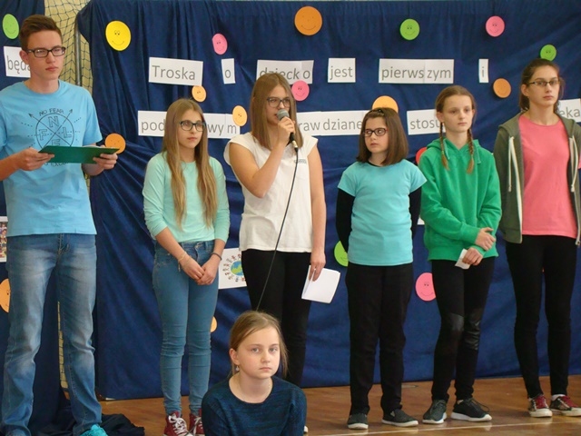 W Polsce od 25 lat obowiązuje także Konwencja o Prawach Dziecka. Te wszystkie spisane prawa i obowiązku młodzież naszej szkoły przypomniała zebranym: dyrekcji, nauczycielom, pracownikom szkoły oraz koleżankom i kolegom z różnych klas. Każdy człowiek, czy to dziecko czy dorosły - ma prawo do godnego życia w pokoju, miłości i w poczuciu bezpieczeństwa.