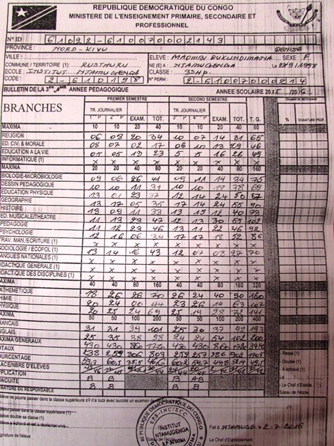MAOMBI DENISE Ntamugenga, 27/04/2016