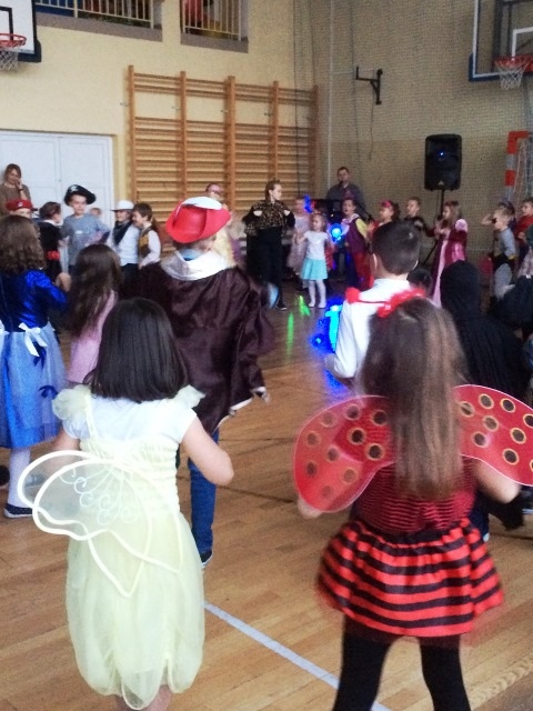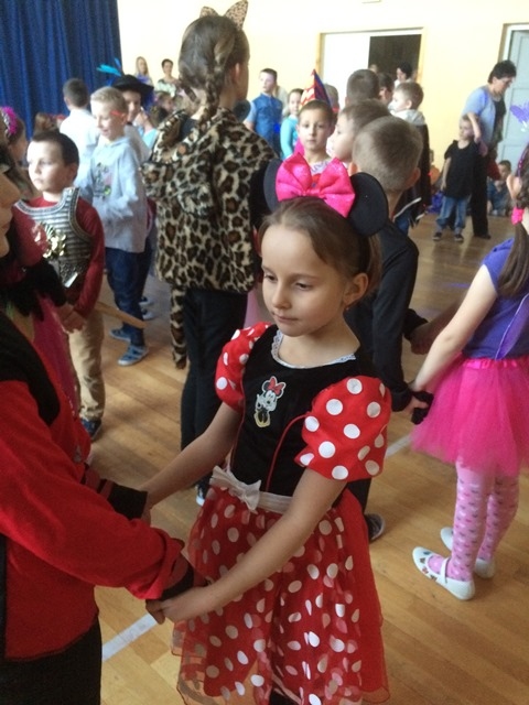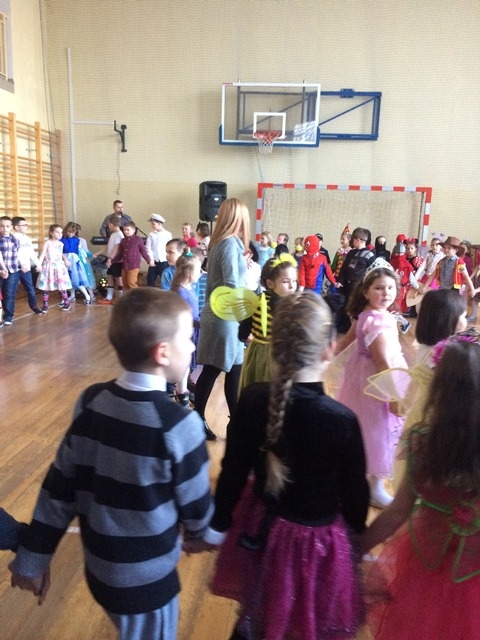 Tegoroczny bal karnawałowy odbył się w naszej szkole 10 stycznia, rozpoczął się dostojnie polonezem. Tego dnia sala gimnastyczna zamieniła się w salę balową pełną wróżek, czarownic, czarodziejów, księżniczek, kowbojów, piłkarzy, policjantów, motylków, spidermanów, wojowników ninja, biedronek, kotków i innych barwnych postaci z kreskówek i bajek.