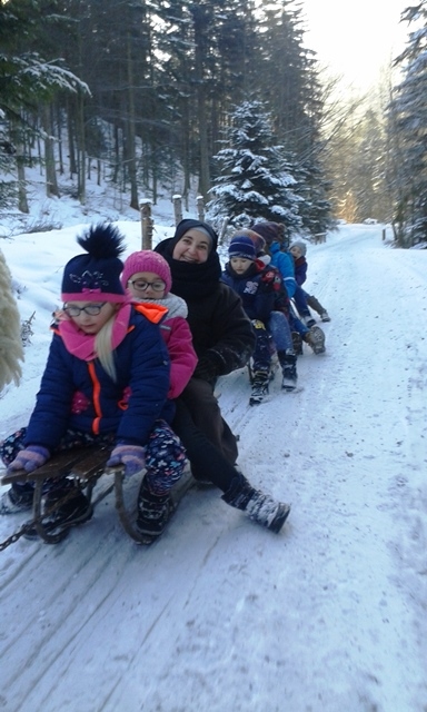 W sobotę 28 stycznia 2017 r. w pierwszy dzień ferii uczniowie naszej szkoły, którzy szczególnie zaangażowali się w dzieło Kolędowania Misyjnego, a także z grup parafialnych… i nie tylko ;), wzięli udział w kuligu z grillem na Gołdynówce w Przysietnicy. Kulig został zorganizowany przez s. Annę Śliwę dzięki wsparciu finansowemu naszego Księdza Proboszcza Jana Wąchały. Serdeczne podziękowania za pomoc i opiekę dla p. Anny Figarskiej i p. Żelasko. Szczególne słowa wdzięczności kieruję do Państwa Gołdynów za przyjęcie nas z ogromną życzliwością i wielkim sercem. Panom: Haza i Tokarczykowi zaś za konie i cały kulig, który oczywiście sprawił wszystkim ogromną frajdę. Dziękuję również Państwu Stawiarskim za wypożyczenie sań i sanek. Pogoda sprzyjała, więc wszystko udało się wyśmienicie!