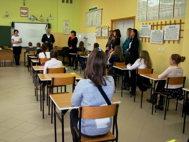 Uczestnicy konkursu dzielnie rywalizowali ze sobą przez 45 minut rozwiązując test znajomości języka angielskiego, a nauczyciele- opiekunowie mieli możliwość zapoznania się z ofertą wydawniczą wydawnictwa Macmillan prowadząc rozmowę z przedstawicielką wydawnictwa Panią Katarzyną Wnuk.