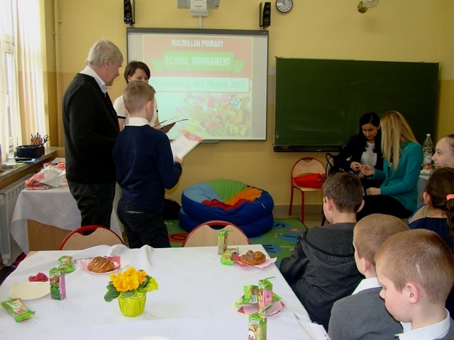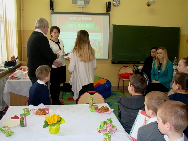 W dniu 9 marca 2017r. o godz. 9.00 po raz drugi odbył się w naszej szkole Turniej Języka Angielskiego dla klas 4-6 szkoły podstawowej - Macmillan Primary School Tournament. Wzięło w nim udział 22 uczniów ze szkół naszej gminy. Gościliśmy uczniów ze Szkoły Podstawowej nr 1 im. ks. Prof. J. Tischnera w Starym Sączu, Szkoły Podstawowej im. Jana Brzechwy w Skrudzinie, Szkoły Podstawowej z Gołkowic Górnych i Moszczenicy Niżnej oraz Szkoły Podstawowej im. 1 PSP AK w Gaboniu.
