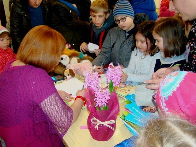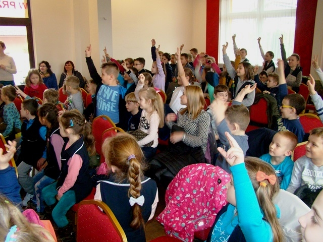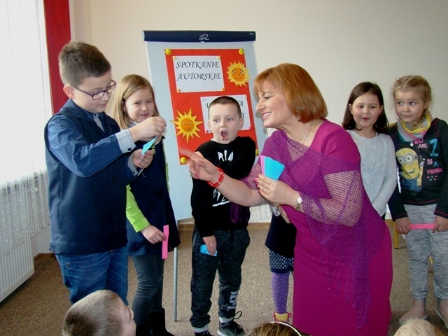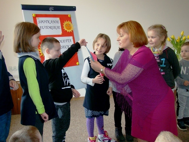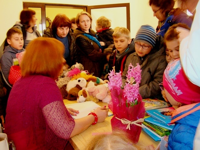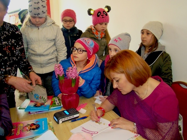 Spotkanie było niezwykle ciekawe. Autorka przygotowała dla dzieci wesołe konkursy, teatrzyk kukiełkowy, a dla młodych kibiców konkurs o piłkarzach! Pięknym opowiadaniem o Andersenie przykuła uwagę młodych słuchaczy. Wspaniale zadziałał kontakt z publicznością i żadne dziecko na tym spotkaniu nie odczuło ani chwili znudzenia. Dzieci miały okazję uczestniczyć w przedstawieniach i konkursach organizowanych przez Autorkę. Jak zwykle na podobnych spotkaniach, każdy mógł zadać pytanie na interesujący go temat dotyczący sztuki pisania – i nie tylko!