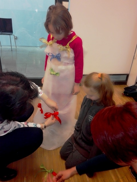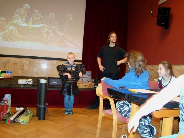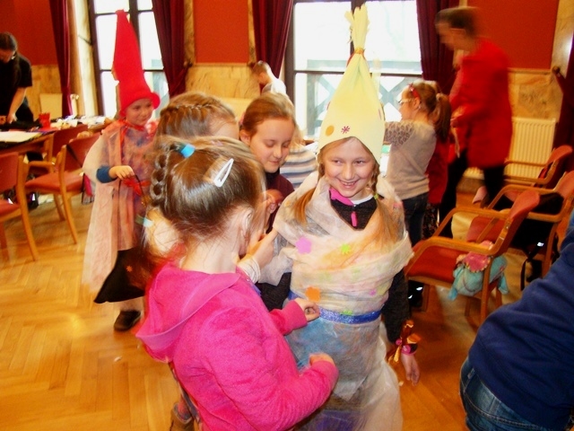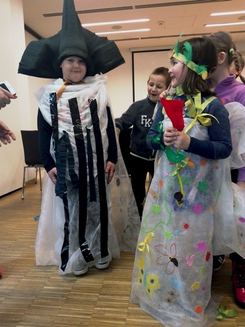 Dzieci poznały warsztat pracy kostiumologa teatralnego zarówno od strony teoretycznej, jak i praktycznej. Dzięki interaktywnej formie warsztatów uczestnicy zobaczyli graficzną prezentację projektów kostiumów oraz ich sceniczną realizację. Zapoznali się ze znaczeniem kostiumu w kreowaniu charakteru sztuki. W dalszej części zajęć dzieci samodzielnie i z wielkim zaangażowaniem tworzyły projekty kostiumów. Następnie na ich podstawie wykonywały w grupach kostiumy do wybranej postaci. Pomysły były bardzo ciekawe.