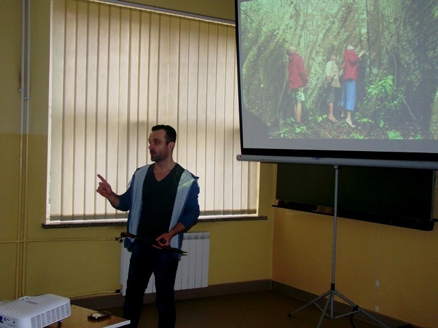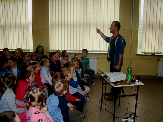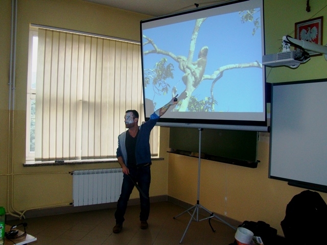 Z wielką pasją mówił o ekstremalnym pobycie w lesie amazońskim z dala od rozwiniętej cywilizacji w pobliżu natury - tropikalnych roślin i zwierząt. Z tego spotkania wszyscy zapamiętali wiele ciekawostek, np. domy „pływające”, osadzone na balach, że pogoda tam jest bardzo zmienna, a niezawodną pogodynką jest tukan, istnieją mrówki, których jad powoduje 24- godzinny ból. Słuchacze mogli również poznać świat plemienia Indian Desana Tujuka, w którym rządzi wódz, a zabawkami dzieci są węże. W trakcie spotkania uczniowie mieli możliwość odbycia wirtualnego rejsu po największej rzece świata oraz oglądania zdjęć, a także pamiątek i rekwizytów takich jak maczeta, nakrycie głowy, model piranii, które jeszcze bardziej przybliżyły tamtejszy klimat. Pan Samuel cały czas miał żywiołowy kontakt z uczniami, nagradzał słodyczami za prawidłowe odpowiedzi.