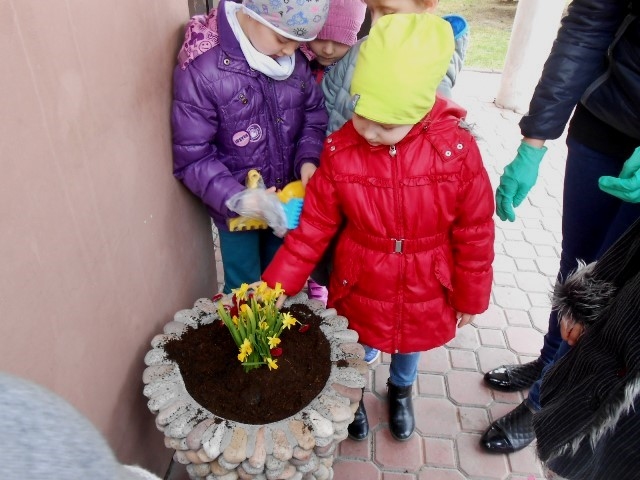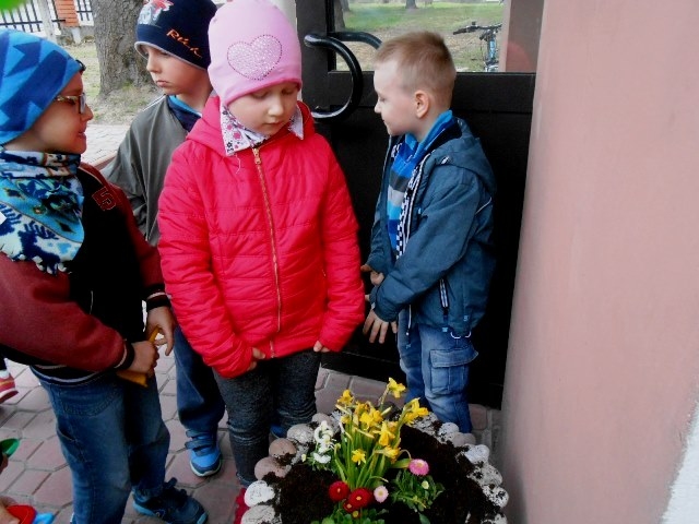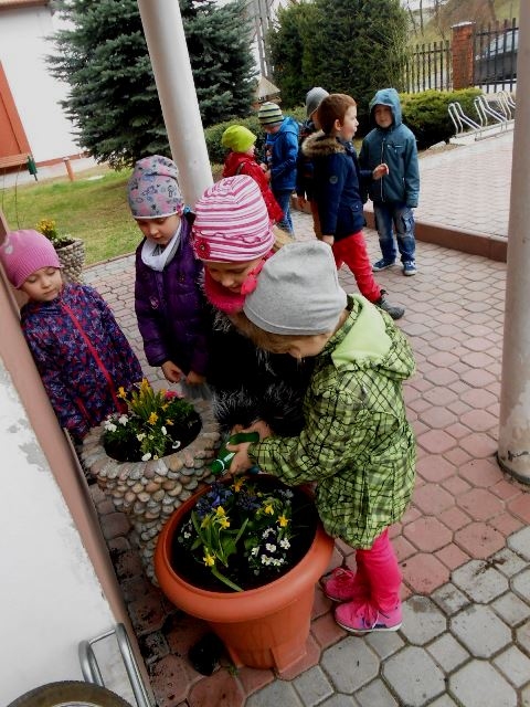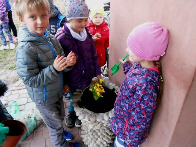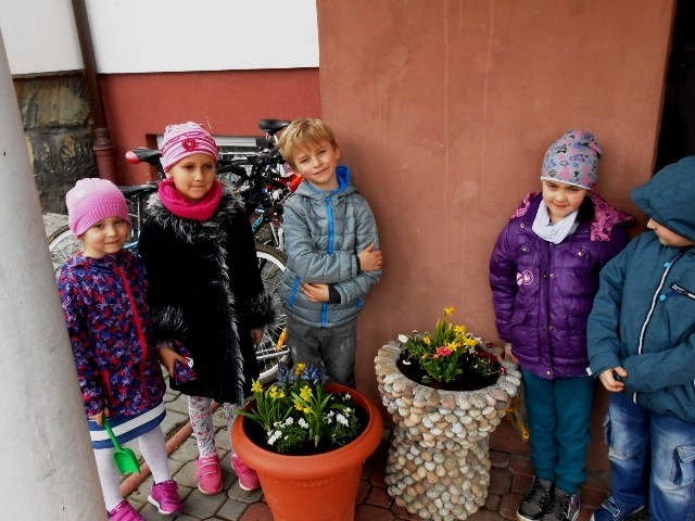 Teraz mali ogrodnicy codziennie będą obserwować i pielęgnować efekty swojej pracy. Miejmy nadzieję, że każdy przedszkolak będzie dbał o te roślinki, aby piękne, różnokolorowe kwiaty zdobiły naszą szkołę jak najdłużej.