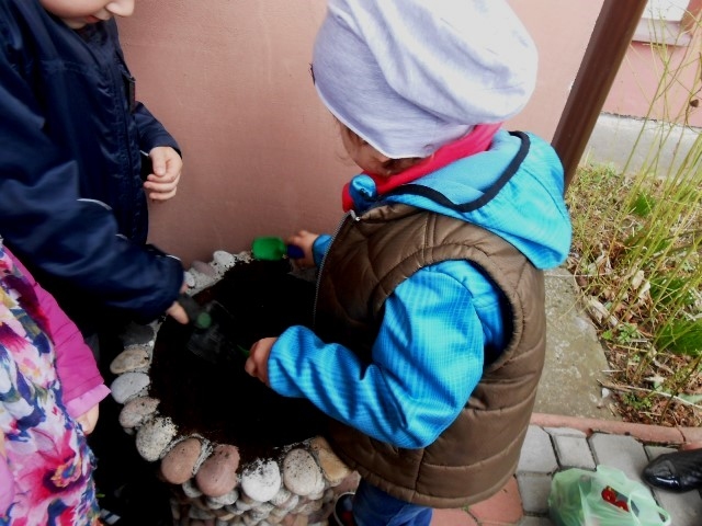 Przedszkolaki sadzą kwiatki
