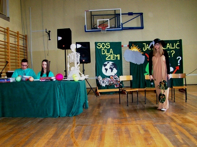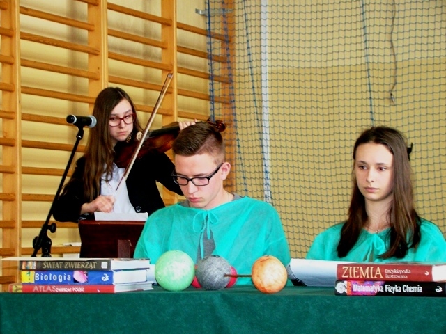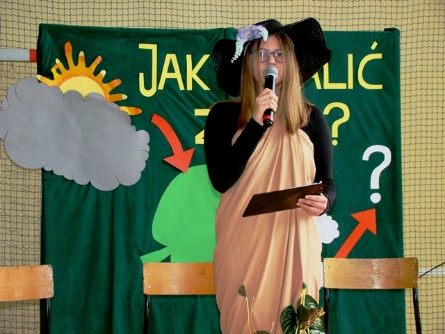W postać Pani Ziemi wcieliła się Joanna Stawiarska z klasy 3 Gimnazjum wspaniale, z emocjami recytując wiersz pt. „Człowiecza pycha”: