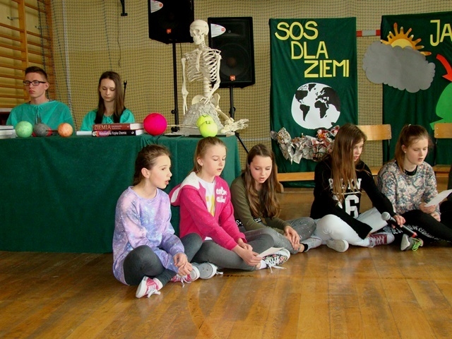 Każdego roku w kwietniu obchodzimy Dzień Ziemi. Jest to jeden dzień, w którym cały świat jednym głosem mówi, jak ważna jest dbałość o wspólne dobro, jakim jest Ziemia. Z tej okazji w naszej szkole Liga Ochrony Przyrody przygotowała apel „SOS dla Ziemi”, który odbył się 27 kwietnia. Mottem apelu był krótki, ale jakże bardzo głęboki w swojej treści wiersz znanej poetki - Wisławy Szymborskiej: