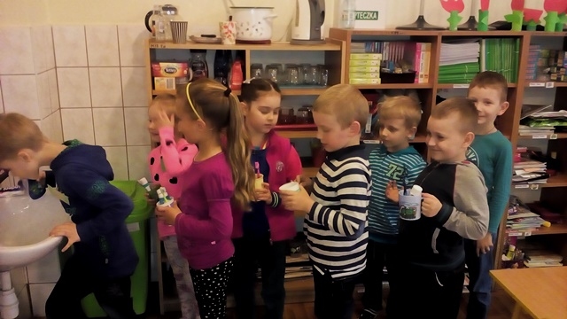 O zęby każdy z nas musi dbać kompleksowo. Poza stosowaniem się do zasad higieny jamy ustnej w domu, nasze przedszkolaki stosują się do nich także w przedszkolu. Każde dziecko posiada swoją szczoteczkę, pastę oraz kubek. Mycie zębów to czynność, która towarzyszy nam codziennie po spożyciu posiłku. Wychowawczynie dbają o to, aby każdy uczeń miał możliwość umycia zębów po jedzeniu, jednocześnie zwracając uwagę na poprawne i dokładne ich szczotkowanie. Ponadto w trakcie zajęć edukacyjnych związanych z naszym zdrowiem, a także higieną jamy ustnej nasze przedszkolaki dowiedziały się na czym polega praca dentysty oraz dlaczego należy myć i dbać o zęby, aby błyszczały każdego dnia.